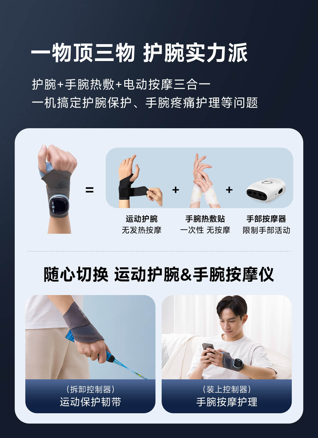 何浩明腱鞘炎电热按摩护腕丨运动+热敷+保护 缓解手腕疼痛