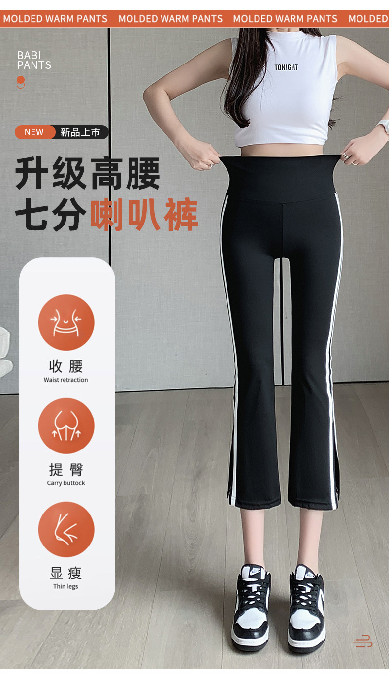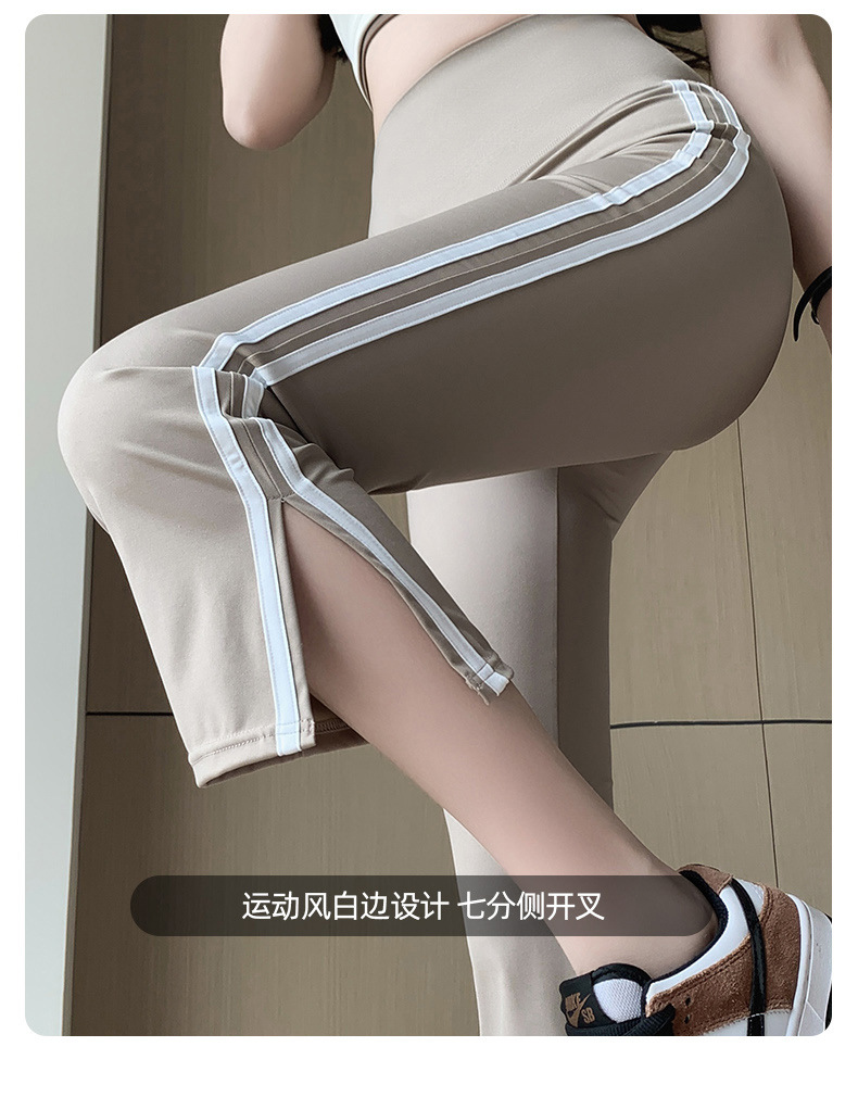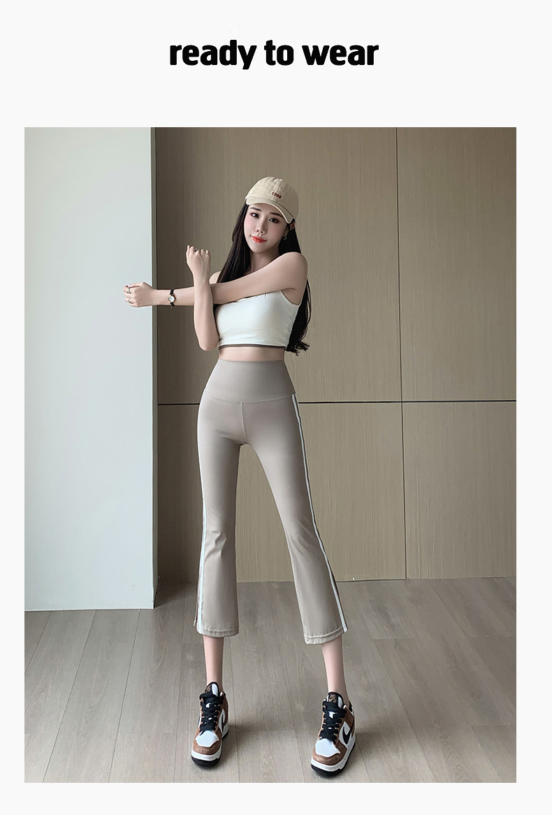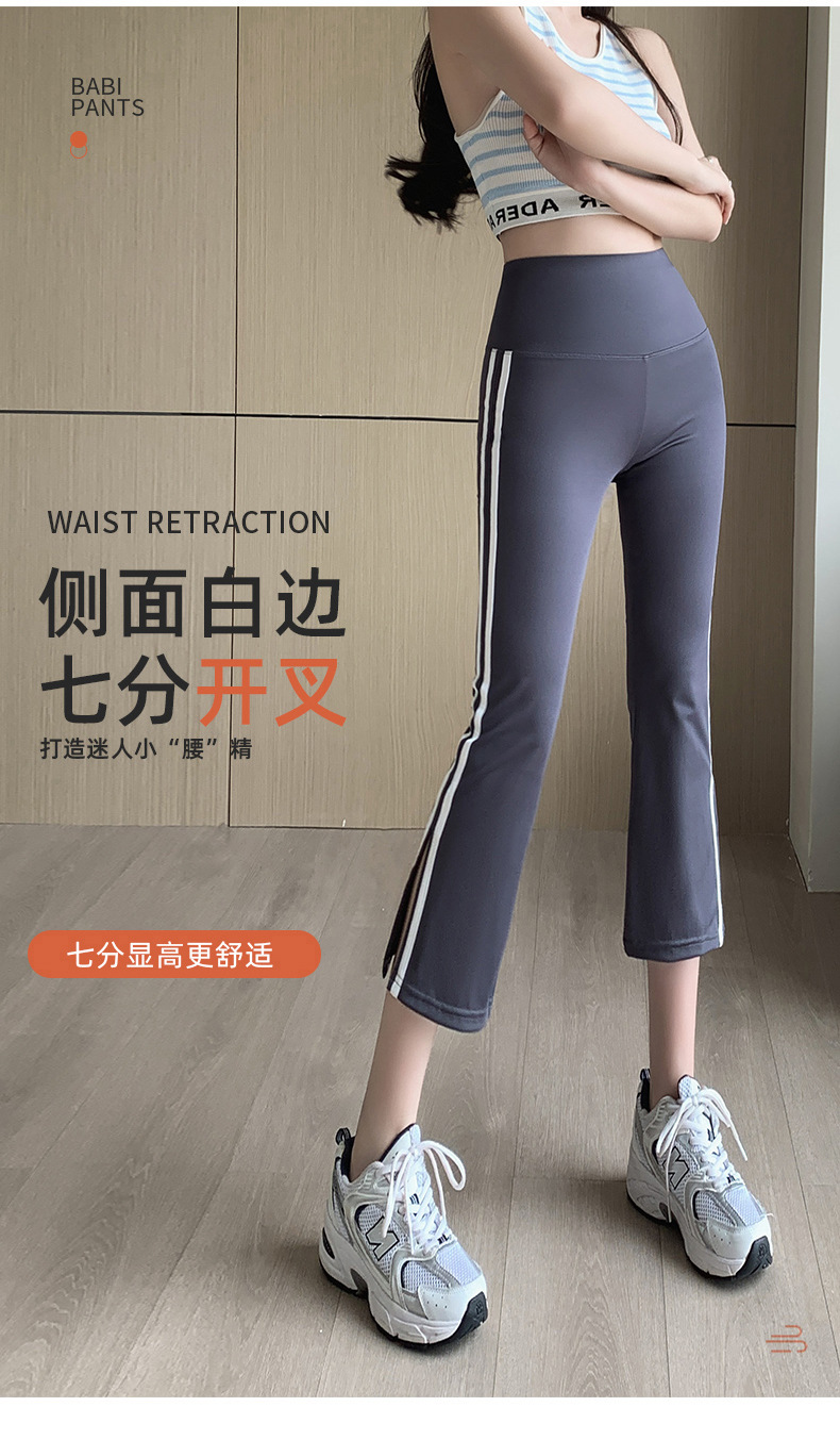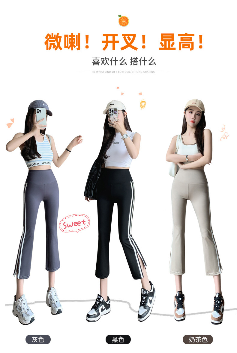 【打造迷人小“腰”精!薄款高腰七分鲨鱼喇叭裤】收腰提臀显瘦,亲肤舒适柔软透气,弧形臀线塑造身型,侧面百边,夏季女外穿紧身打底裤白边收腹脚口开叉微喇瑜伽裤