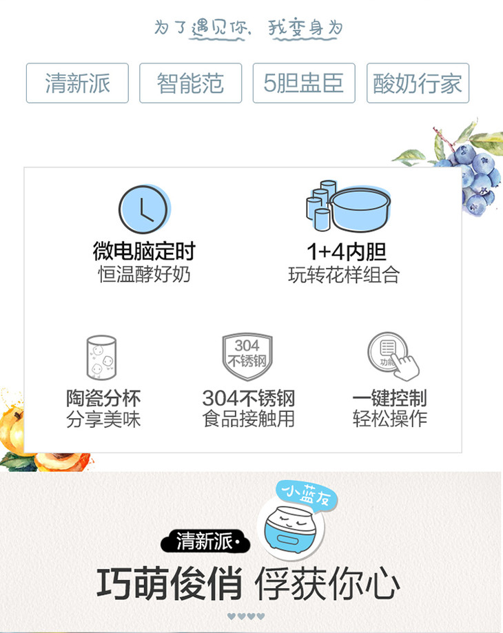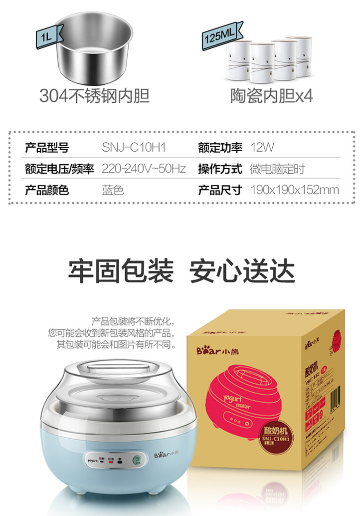【小熊】*酸奶机家用自动酸奶机 SNJ-C10H1不锈钢内胆