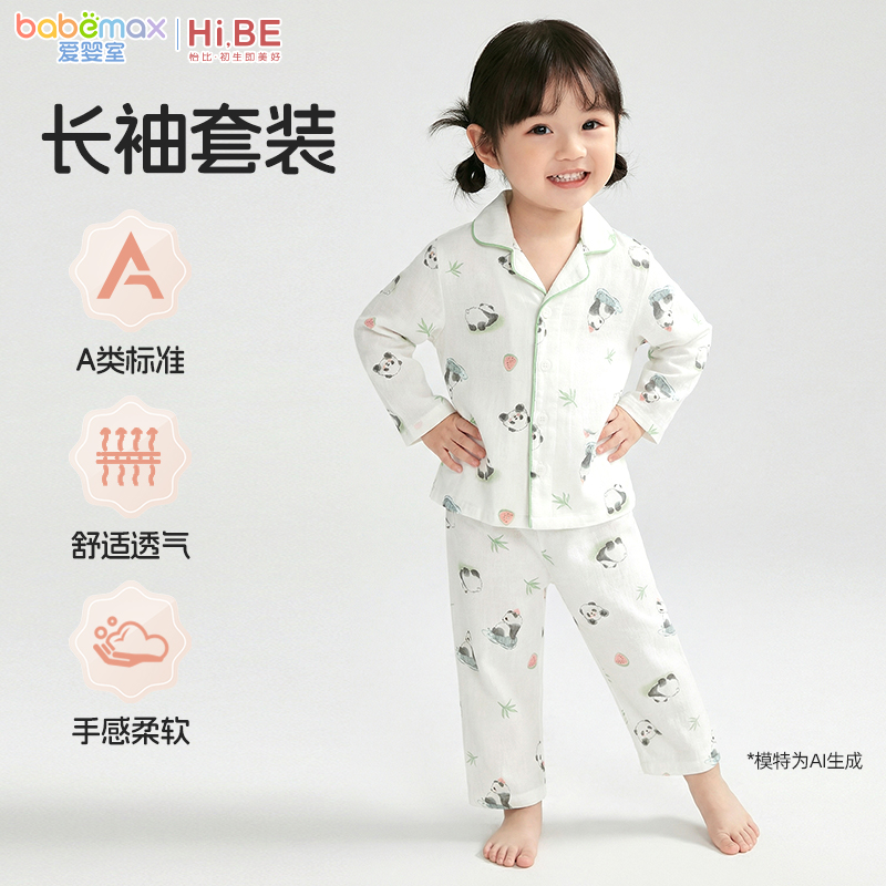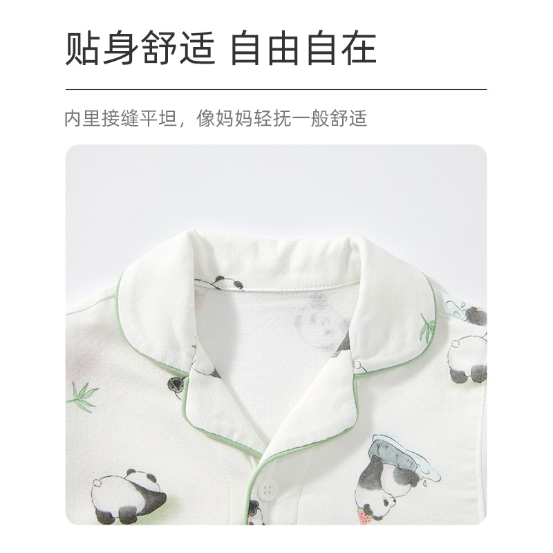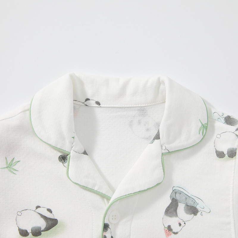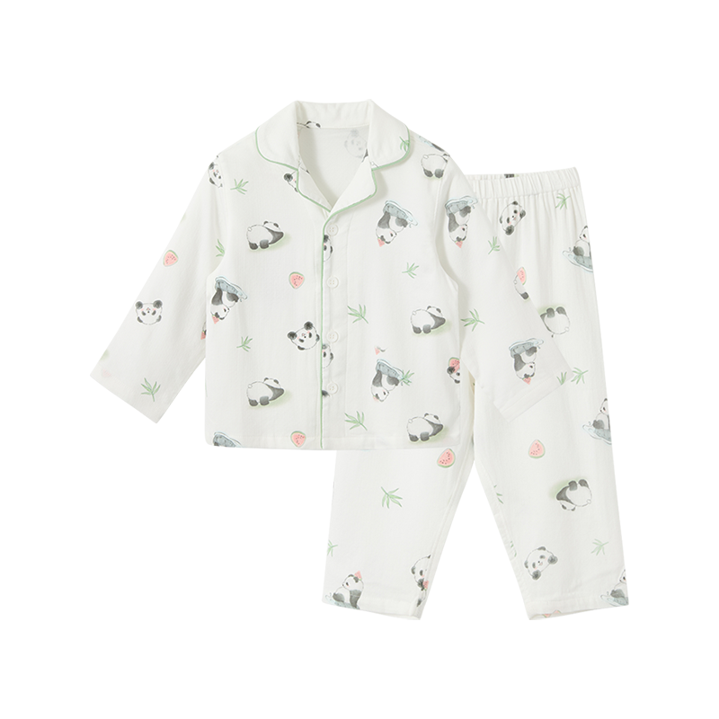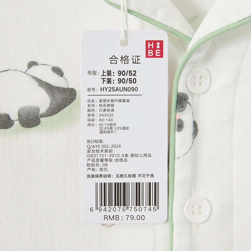 怡比快乐熊猫家居长袖开襟套装HY25AUN090白黑色调(90#-130#)