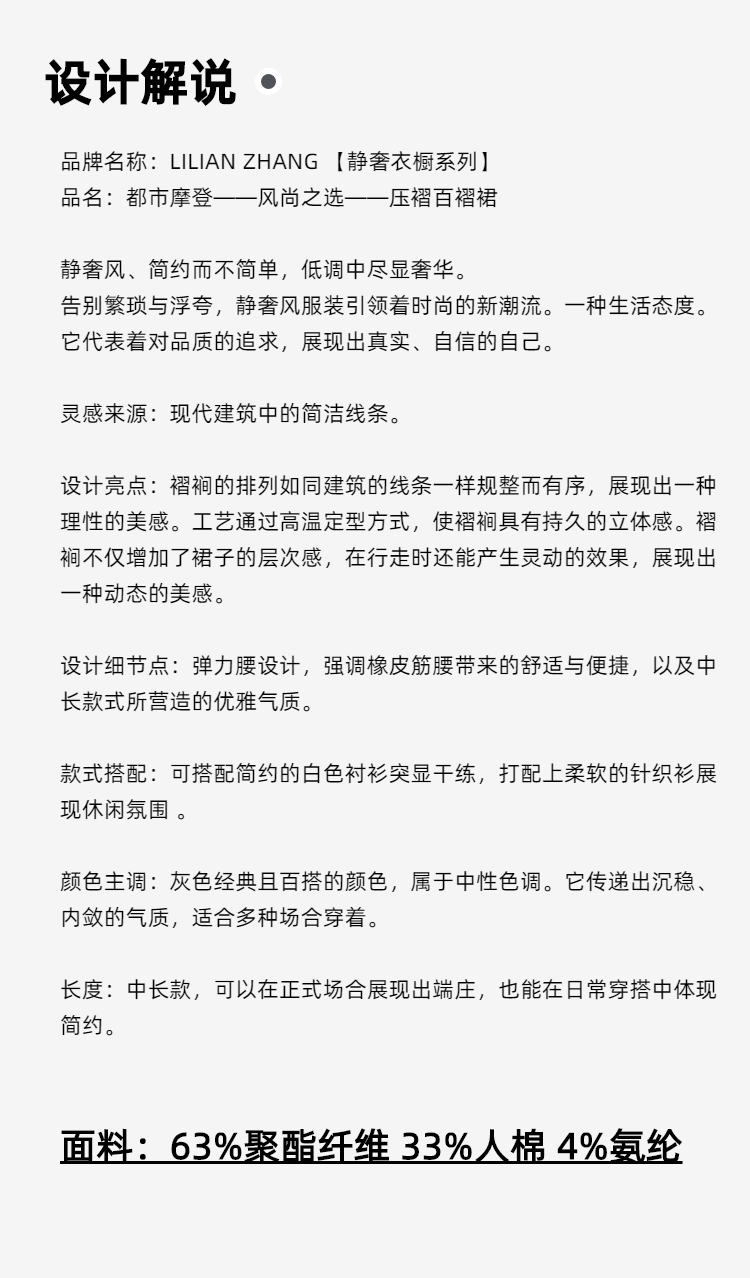 E“定制”——静奢风 ——都市摩登——风尚之选——灰色压褶百褶裙 2503007
