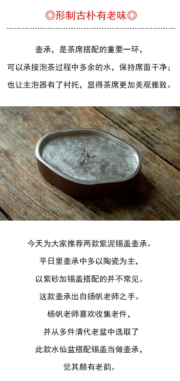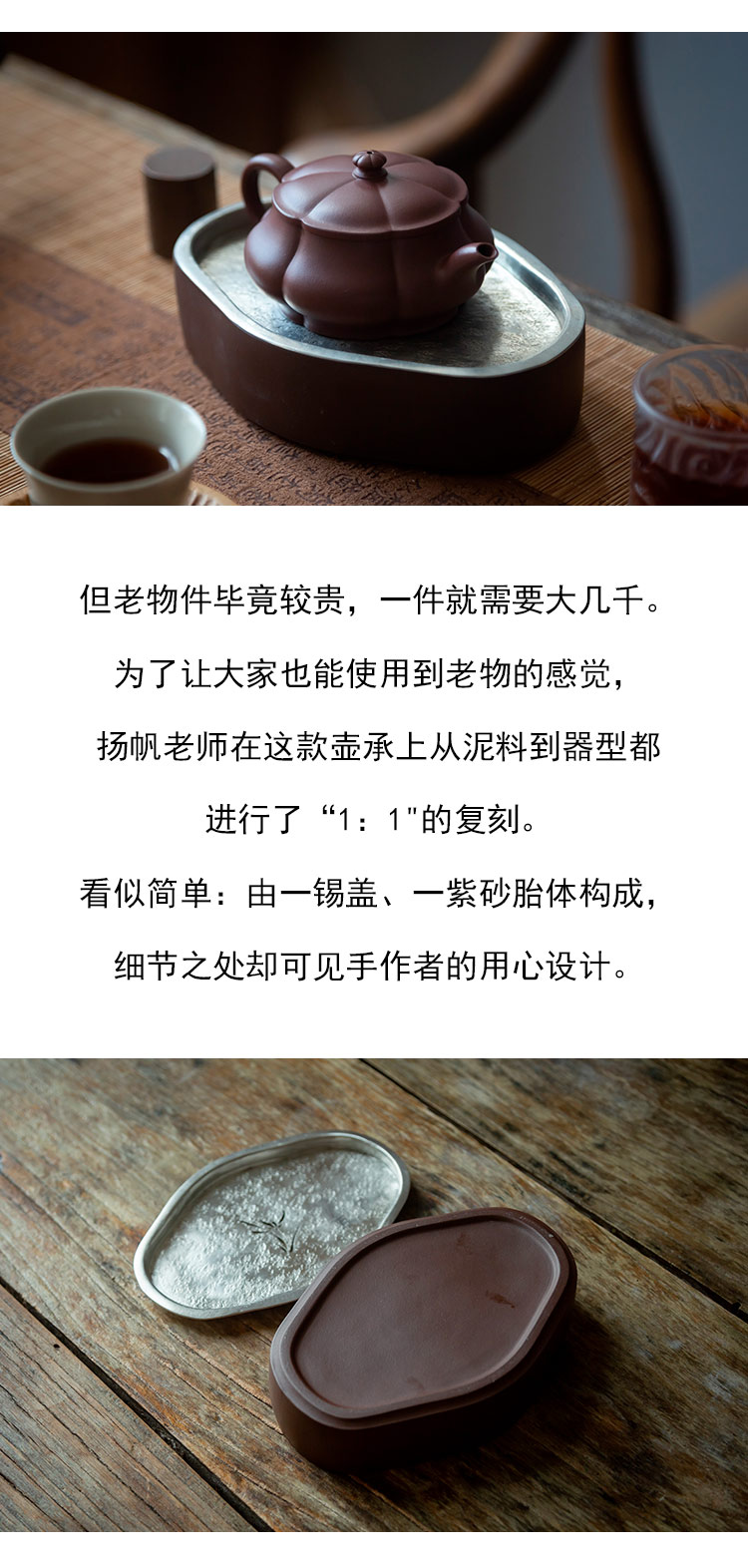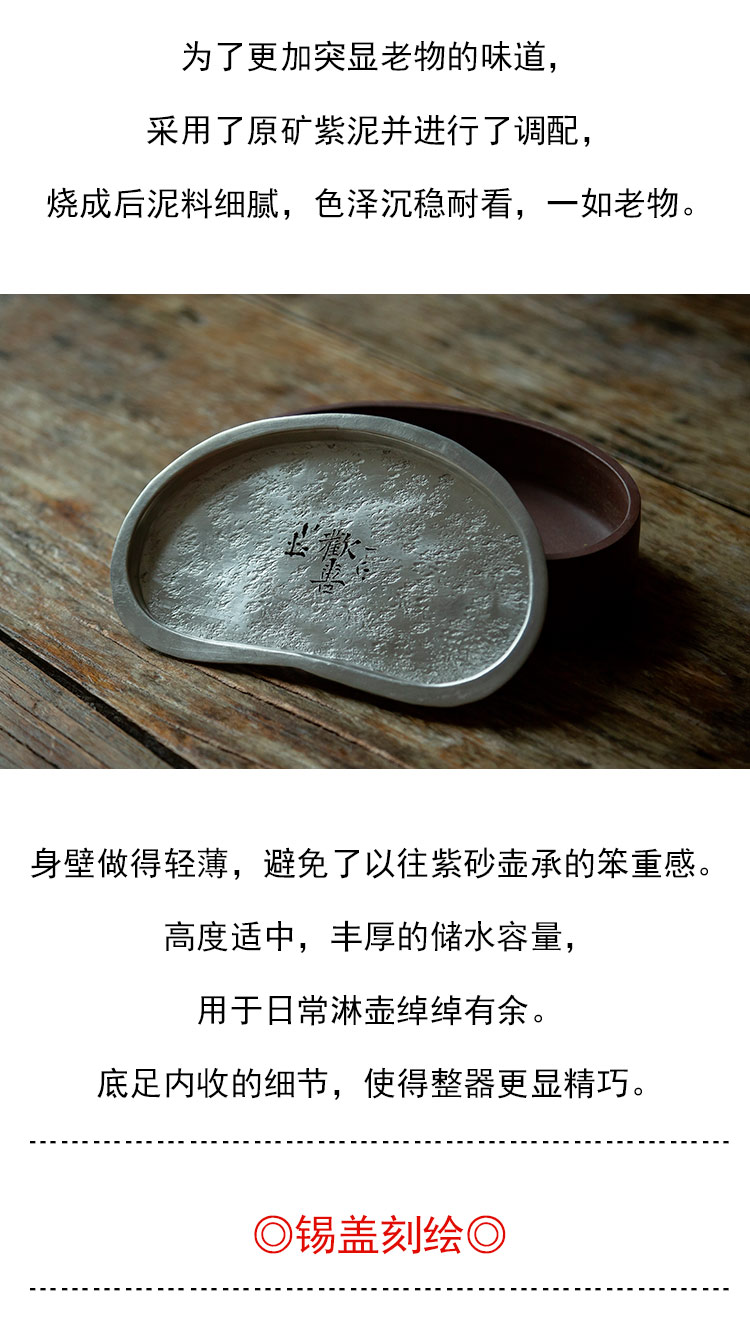 茶香记 紫砂紫泥干泡台锡盖壶承海棠腰形茶盘古朴雅致茶道零配
