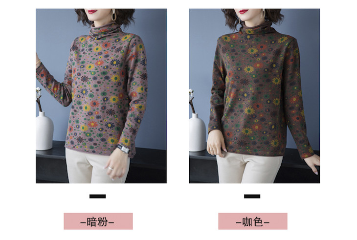 JCG-998秋冬新款针织衫堆堆领印花针织打底衫