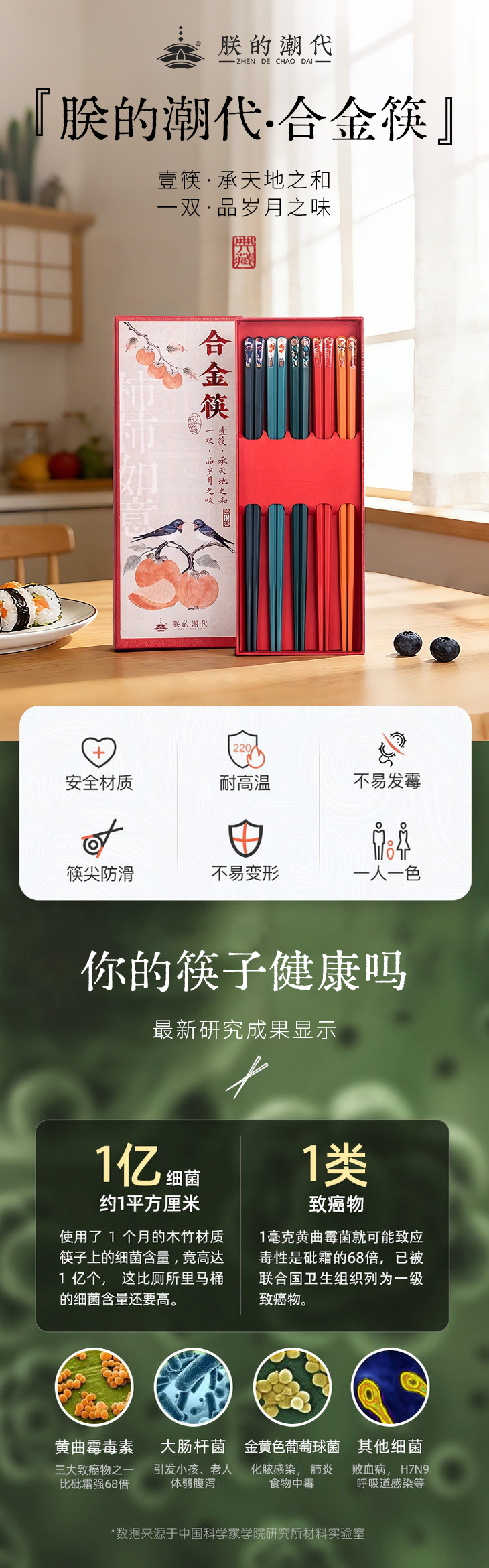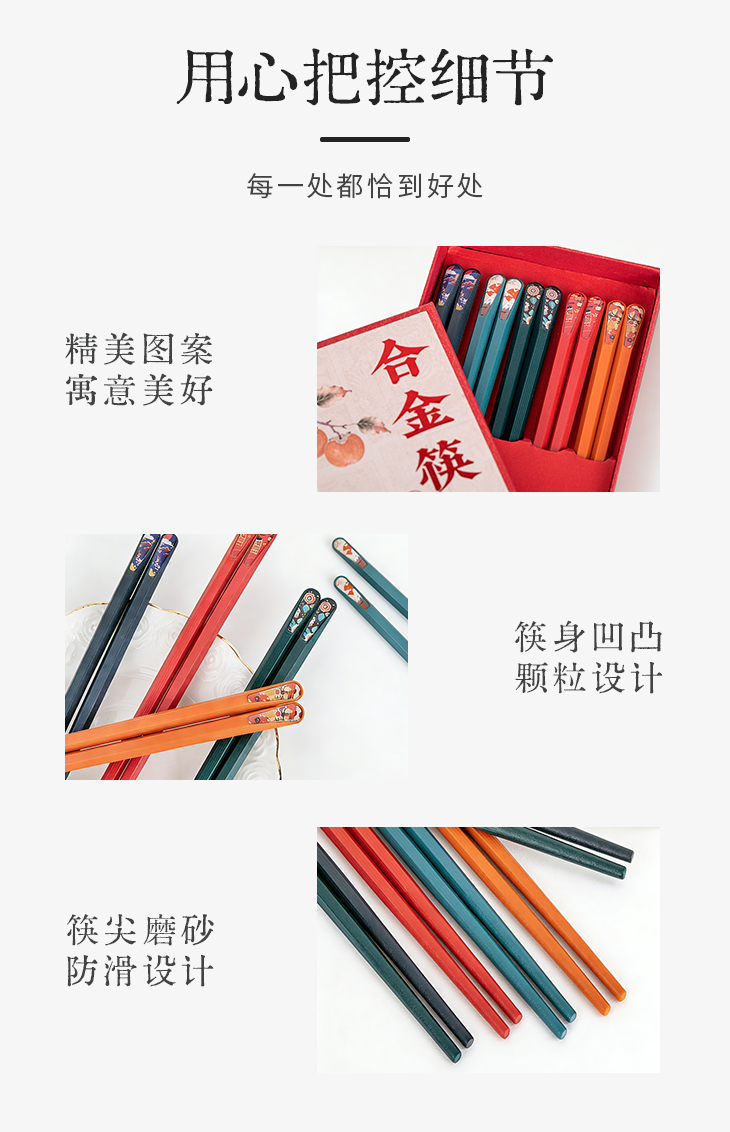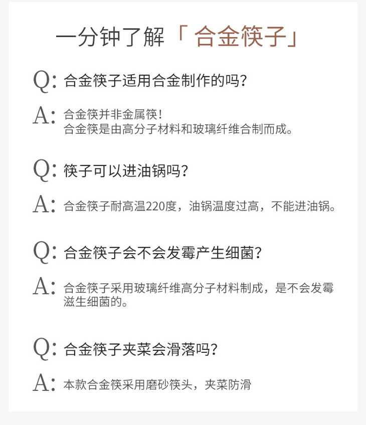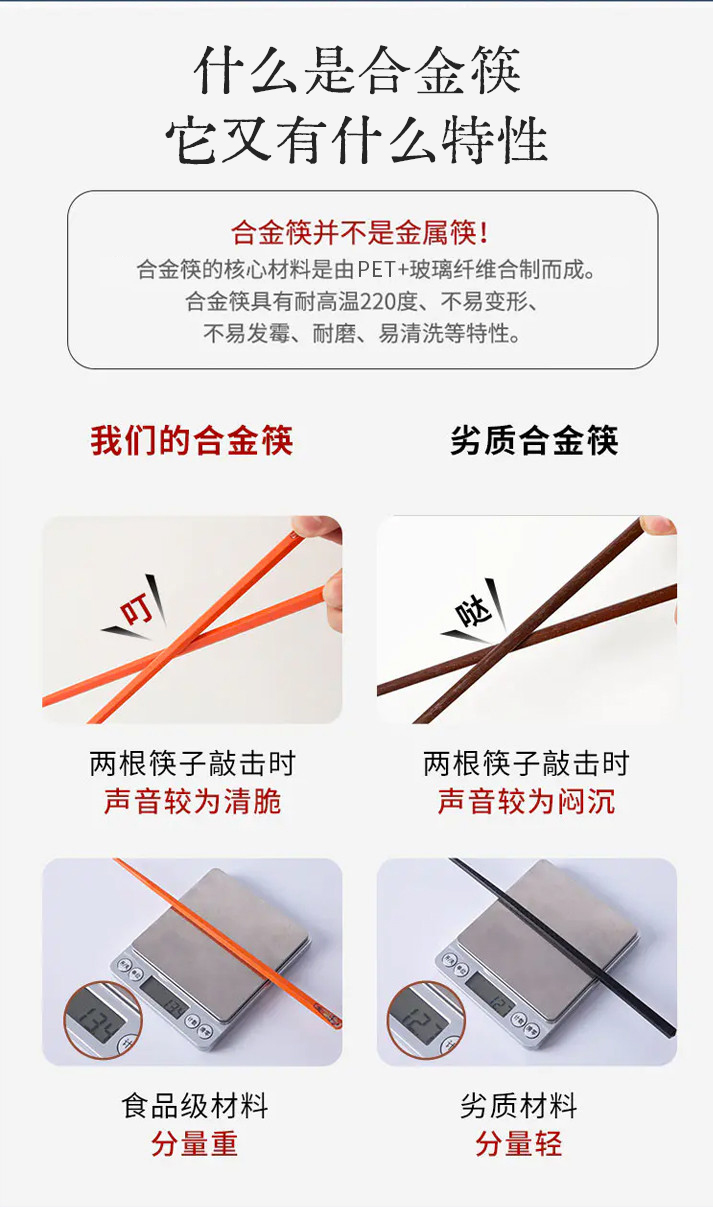 朕的潮代合金筷 PET+玻纤合成材料 不发霉不变形 不吸油污易清洗