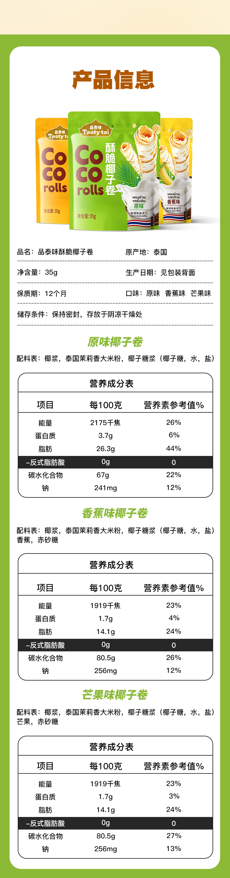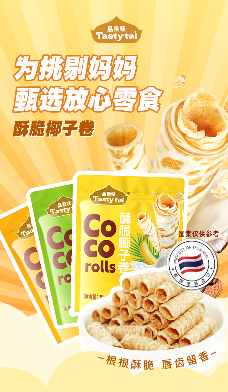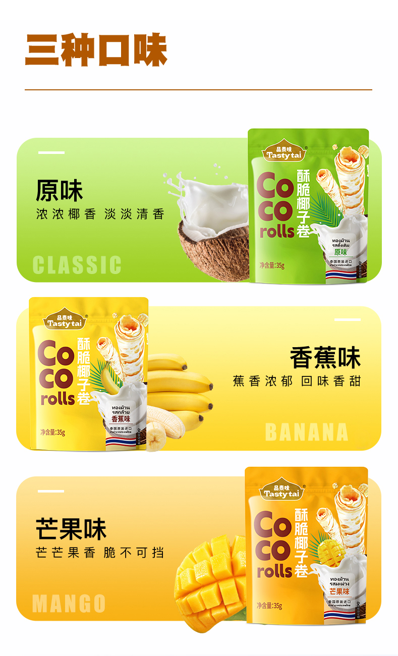 酥脆椰子卷 | 35g/袋 原味/芒果味/香蕉味 素蛋卷 泰国进口 解压零食 品泰味