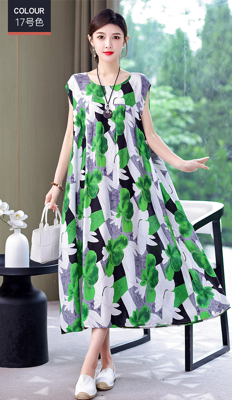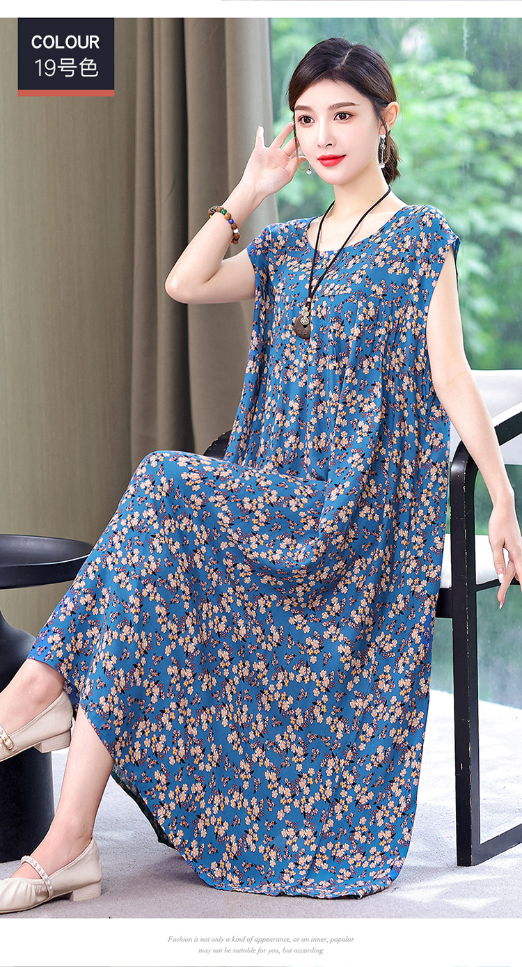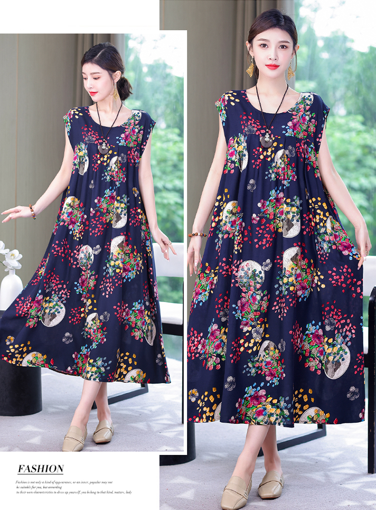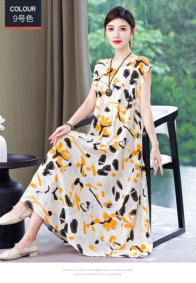 HS-769棉绸夏装连衣裙大码女装200斤宽松人造棉无袖新款裙子