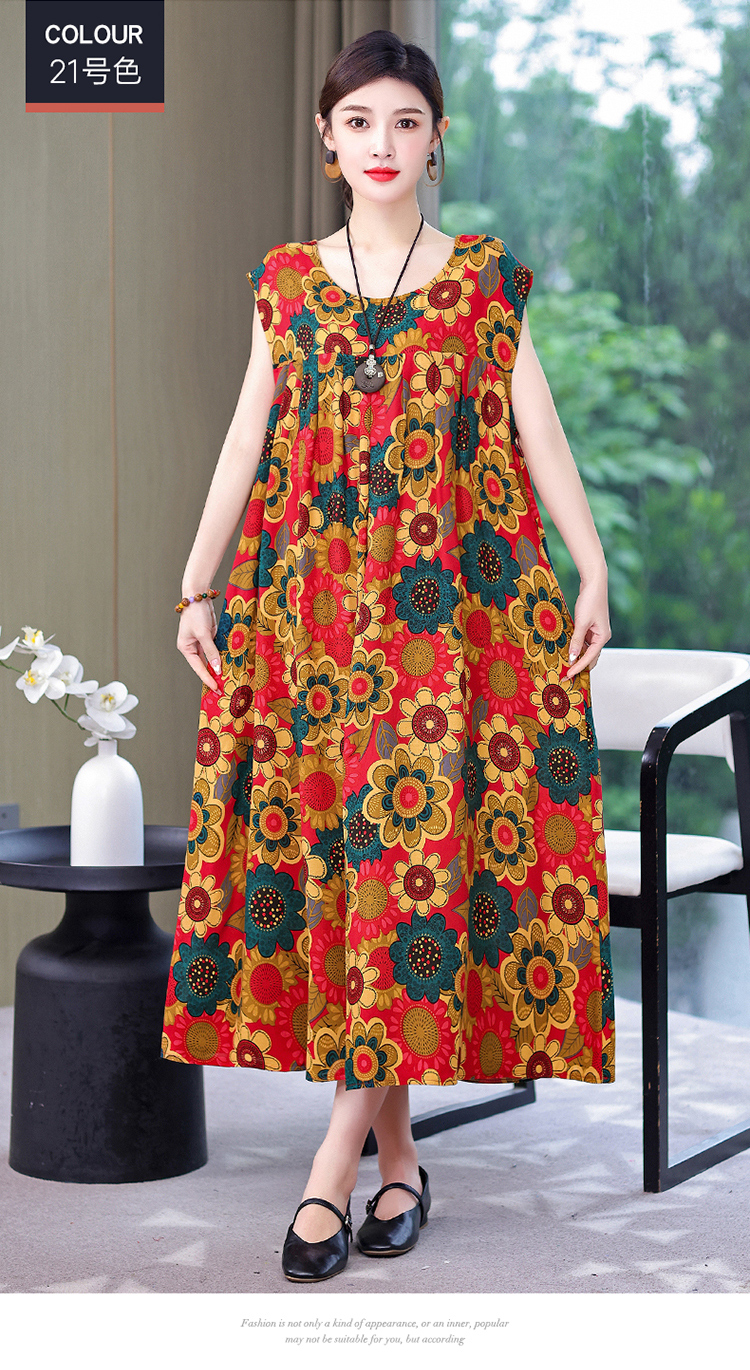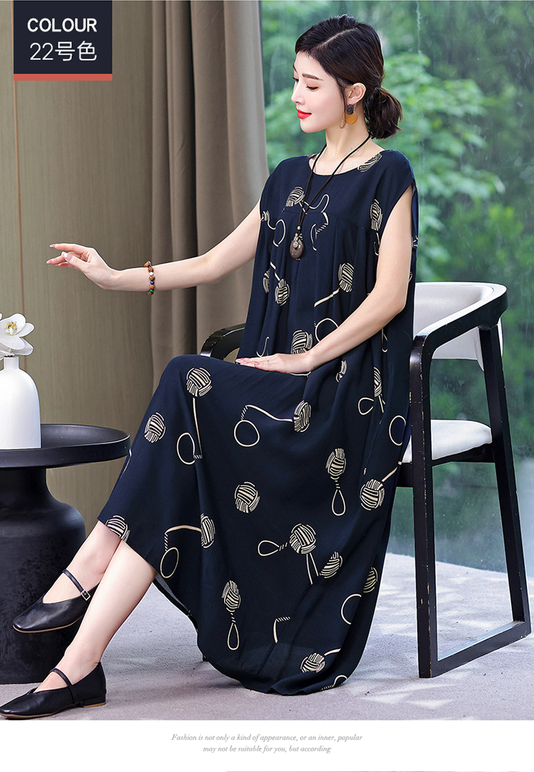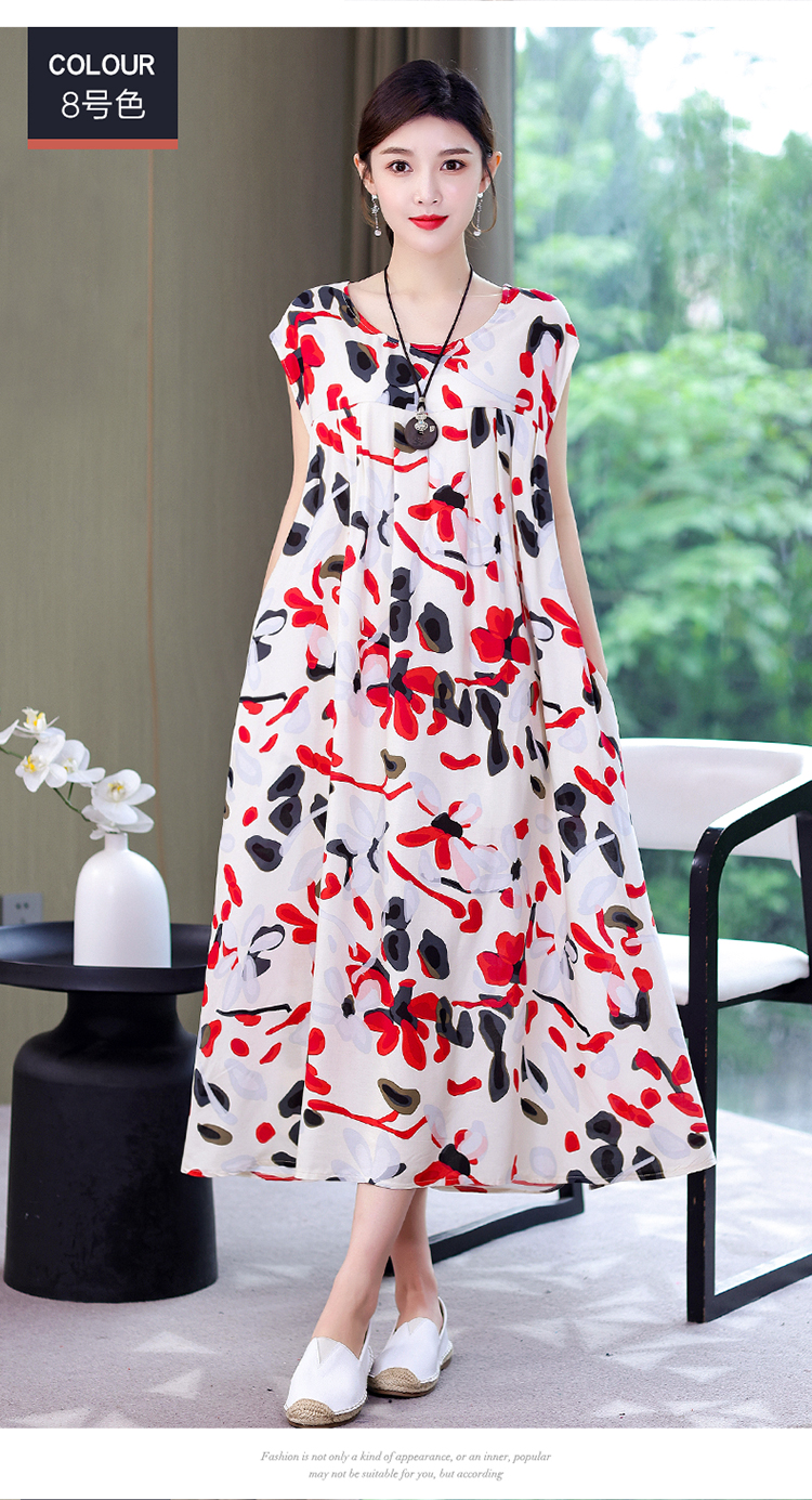 HS-769棉绸夏装连衣裙大码女装200斤宽松人造棉无袖新款裙子