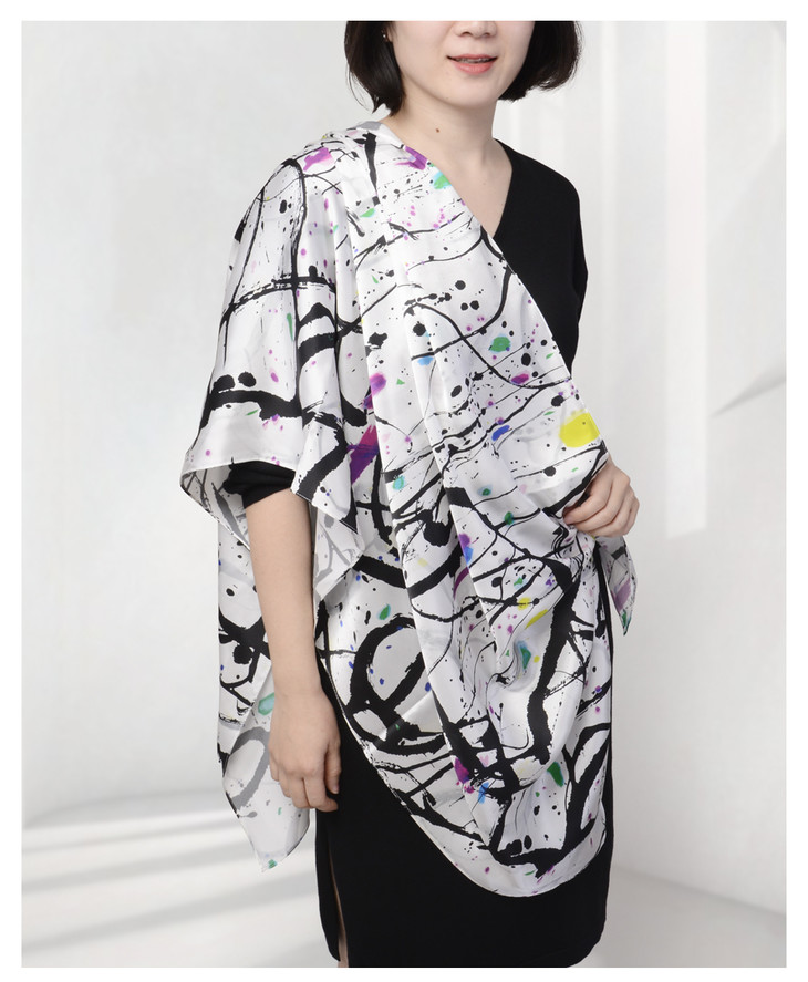 吴冠中艺术丝巾《紫藤》长巾 桑蚕丝
