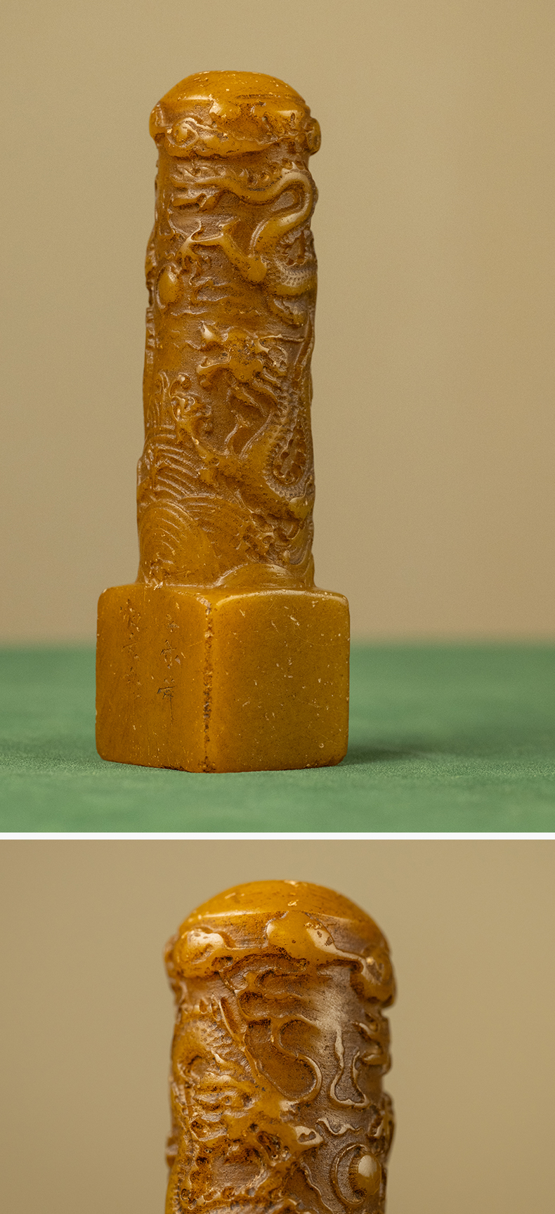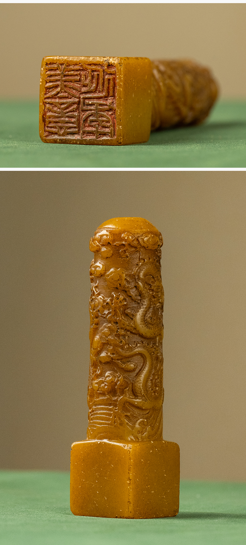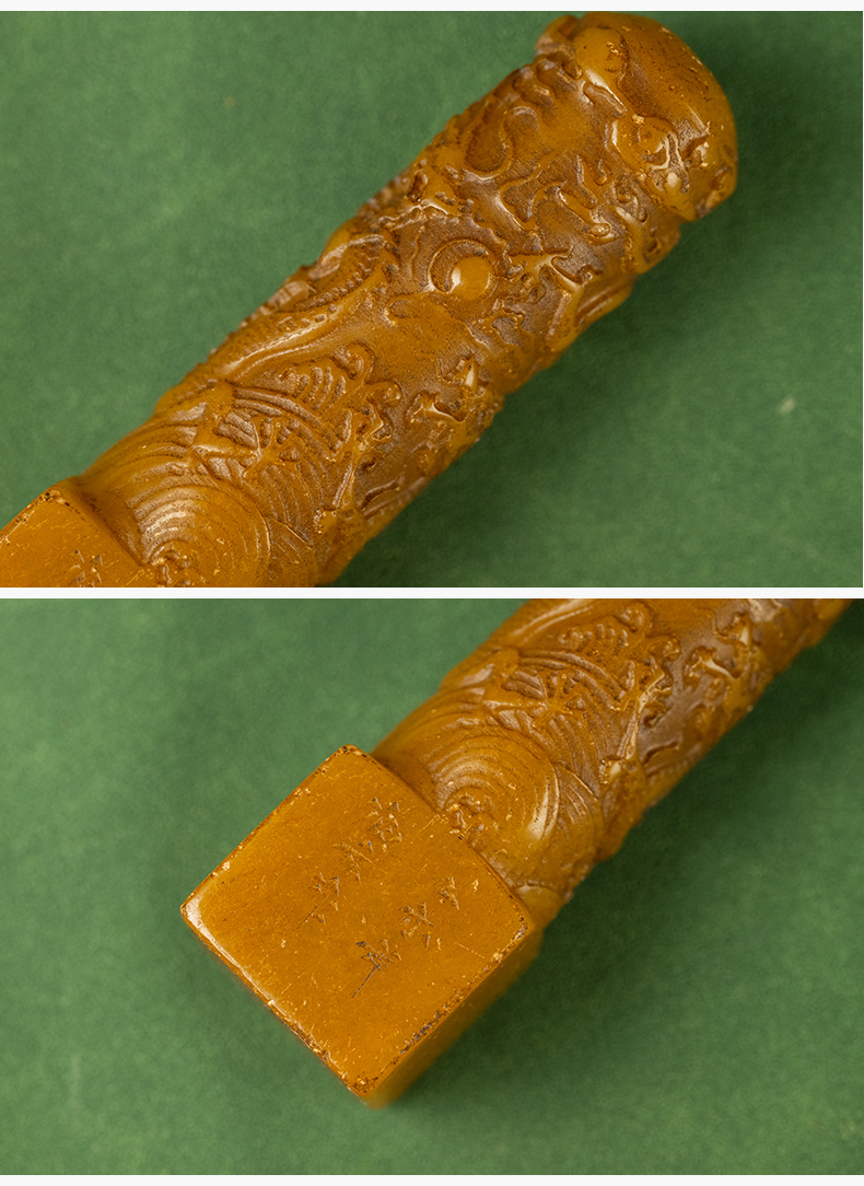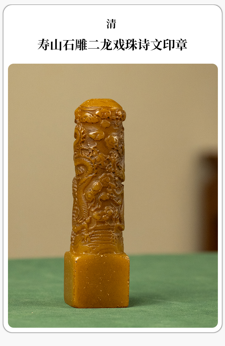 清 寿山石雕二龙戏珠诗文印章