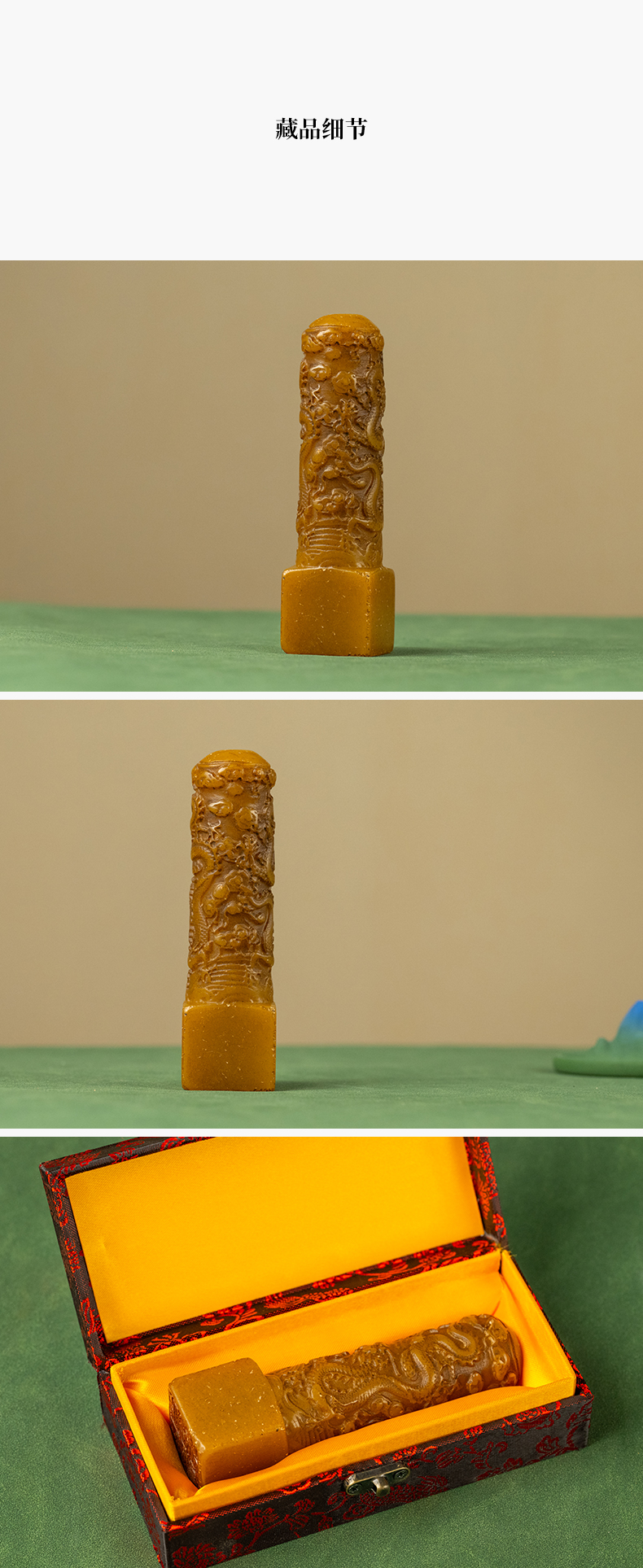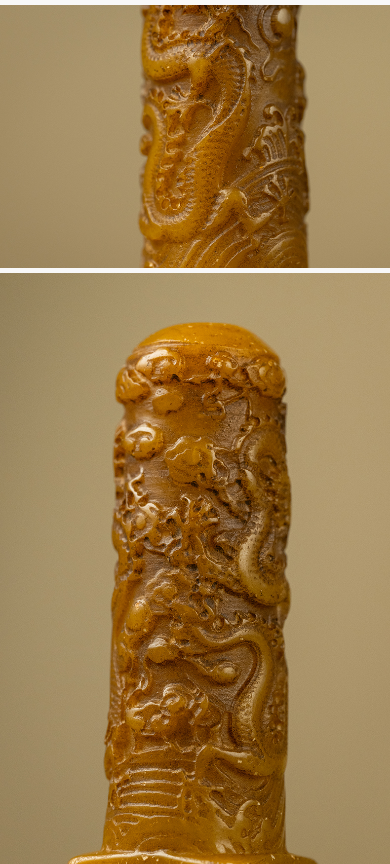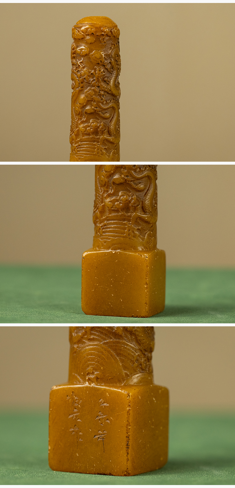 清 寿山石雕二龙戏珠诗文印章