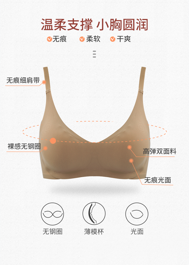 贝佳人无尺码通杯文胸无钢圈薄杯柔软舒适内衣女无痕简约文胸BW952119