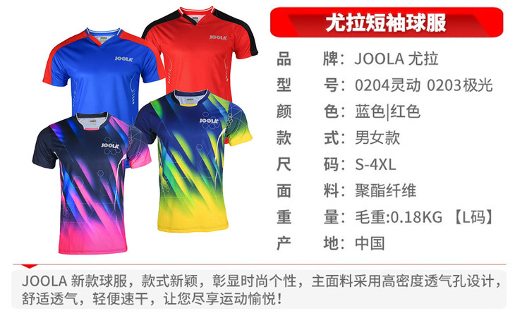 JOOLA优拉灵动男女乒乓球服装比赛服运动短袖上衣尤拉