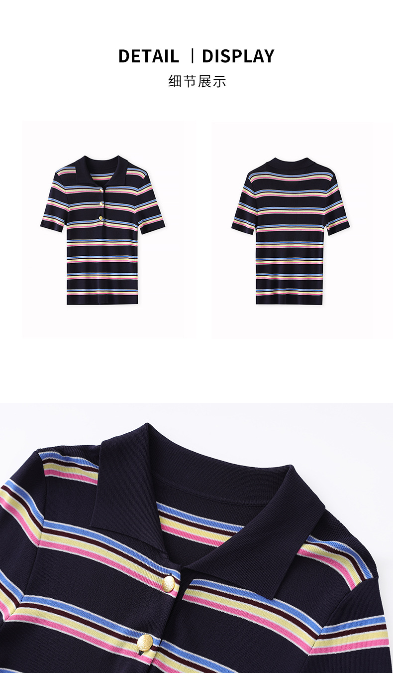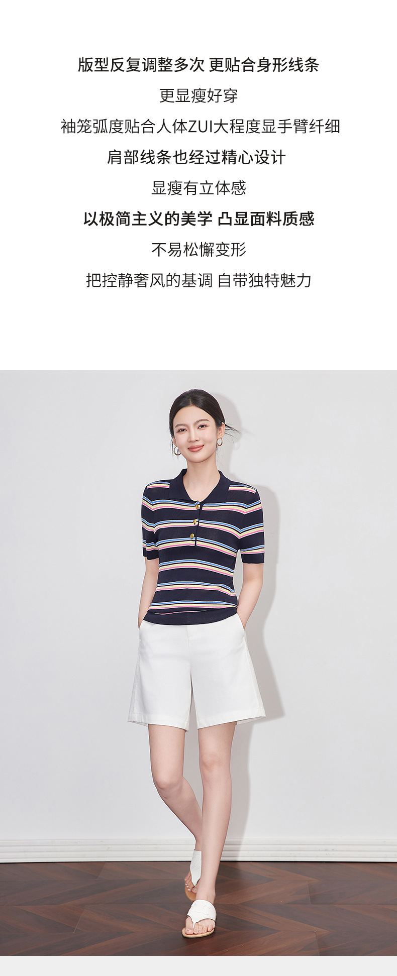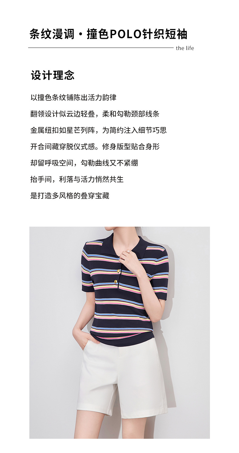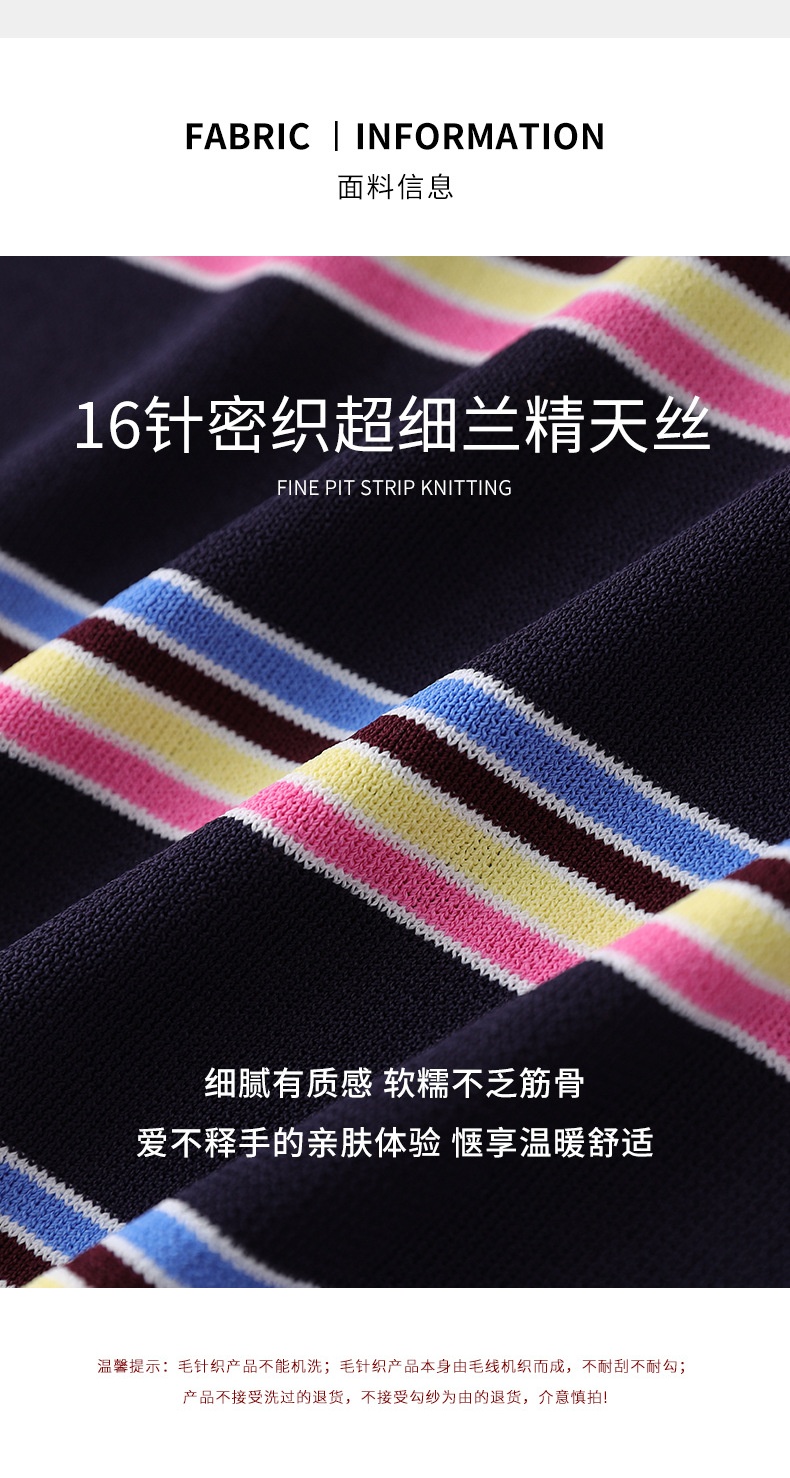 「高货wl」全新升级【铂金会员201/天猫269/差价68】(02943)洛诗琳高级感Polo领撞色条纹16针超细兰精天丝针织上衣