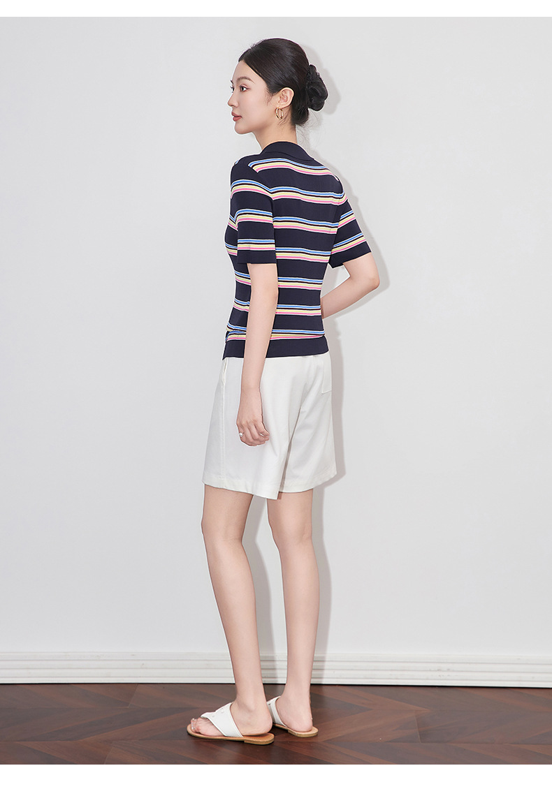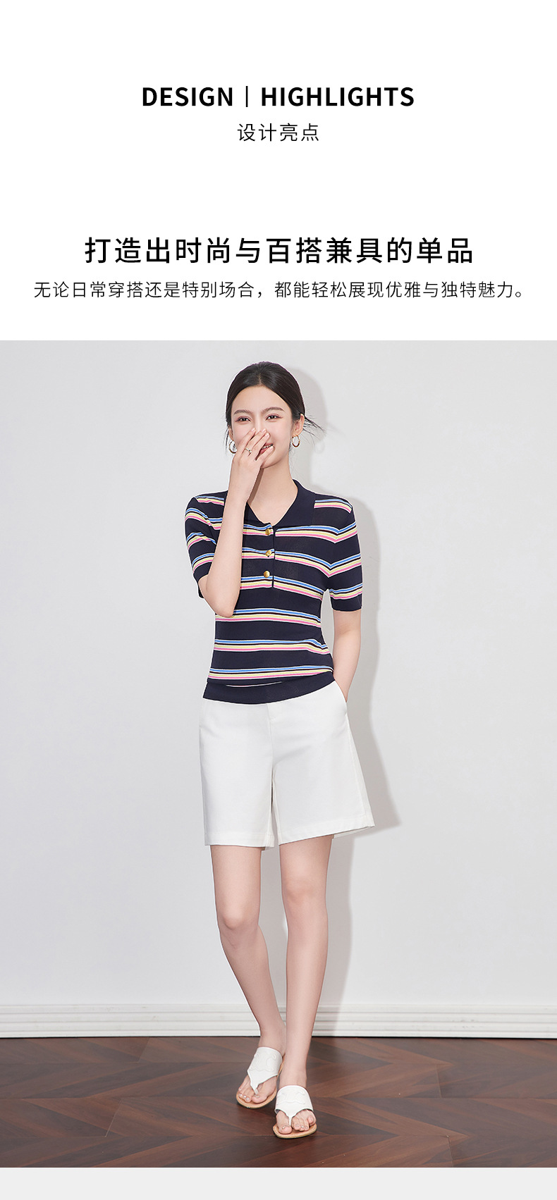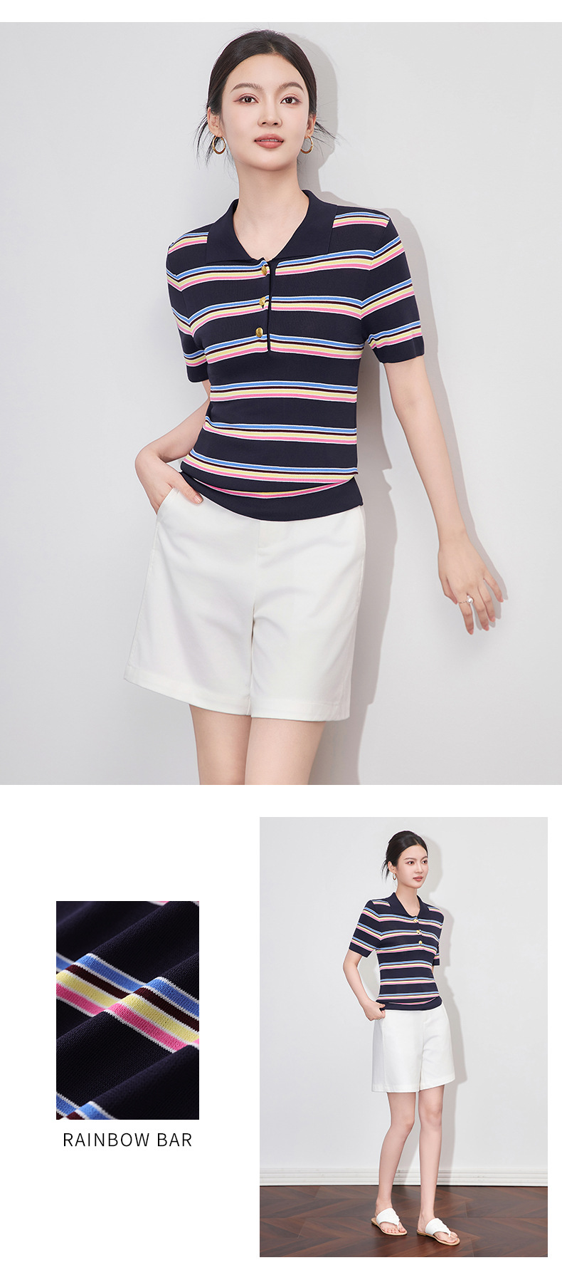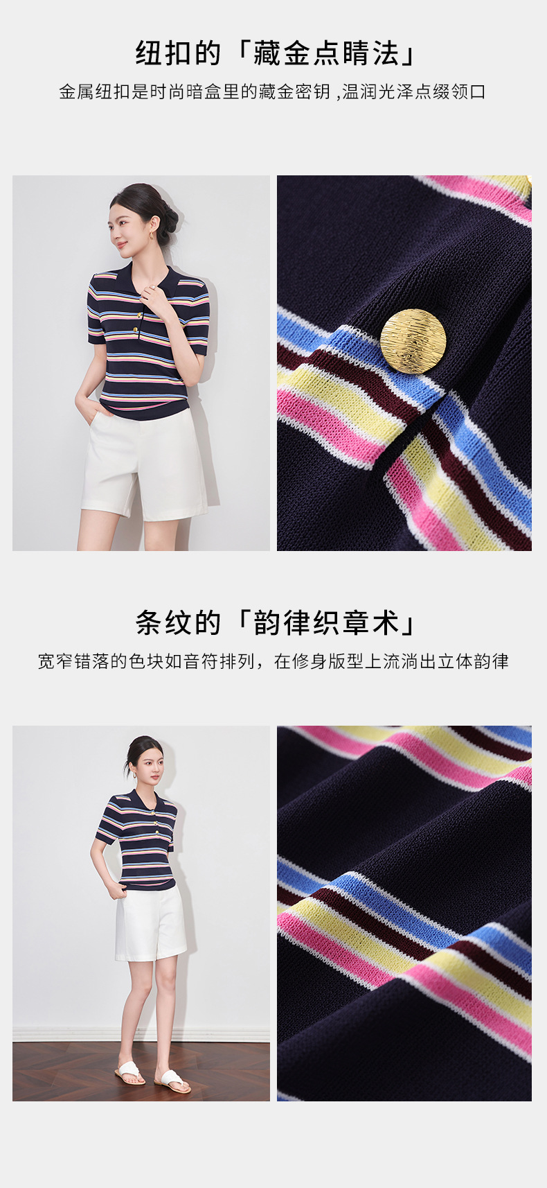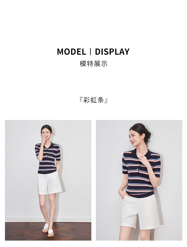 「高货wl」全新升级【铂金会员201/天猫269/差价68】(02943)洛诗琳高级感Polo领撞色条纹16针超细兰精天丝针织上衣