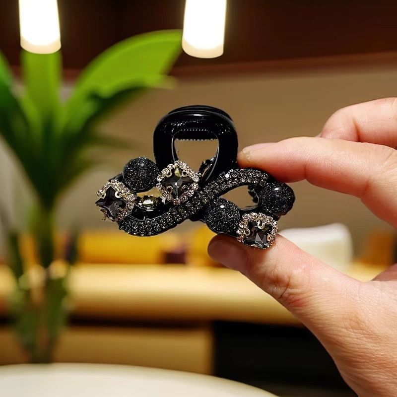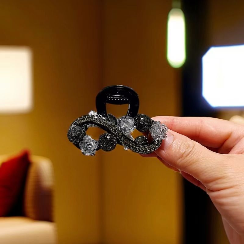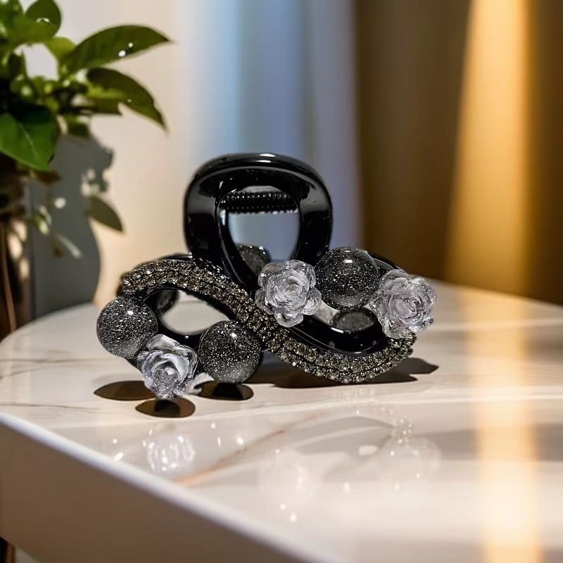 丁摩【两个装】高级发饰新款后脑勺发夹轻奢气质水钻珠子花朵抓夹鲨鱼夹高端盘发5ZF-1191