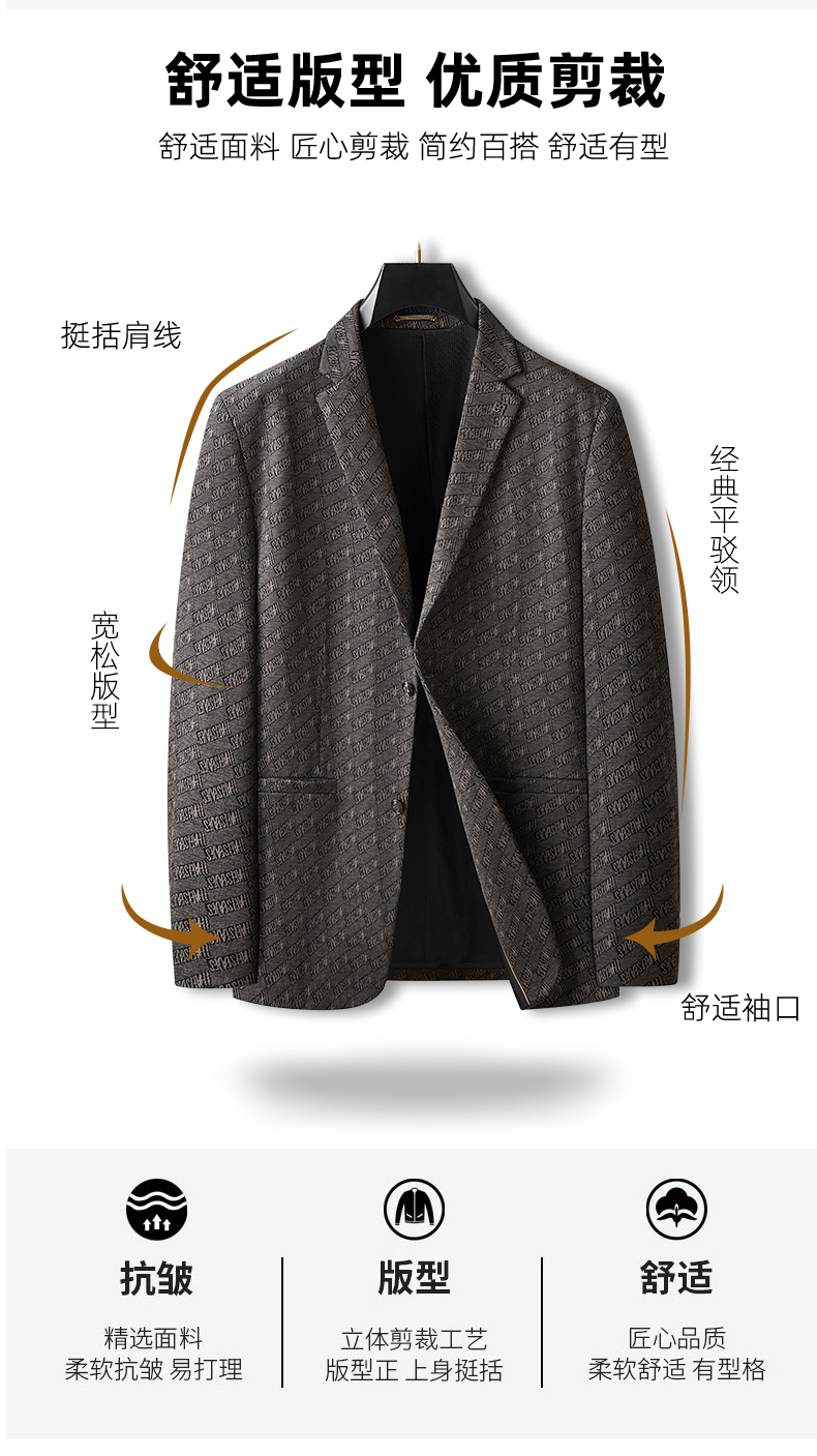【新款DDA】大依优型品质西服外套商务夹克男宽松加肥加大码上衣胖子正装休闲 商品图0