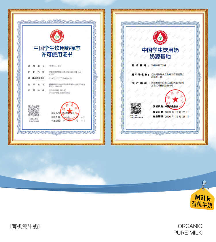 【品名】新疆昭昭牧牧3.8蛋白高钙有机纯牛奶