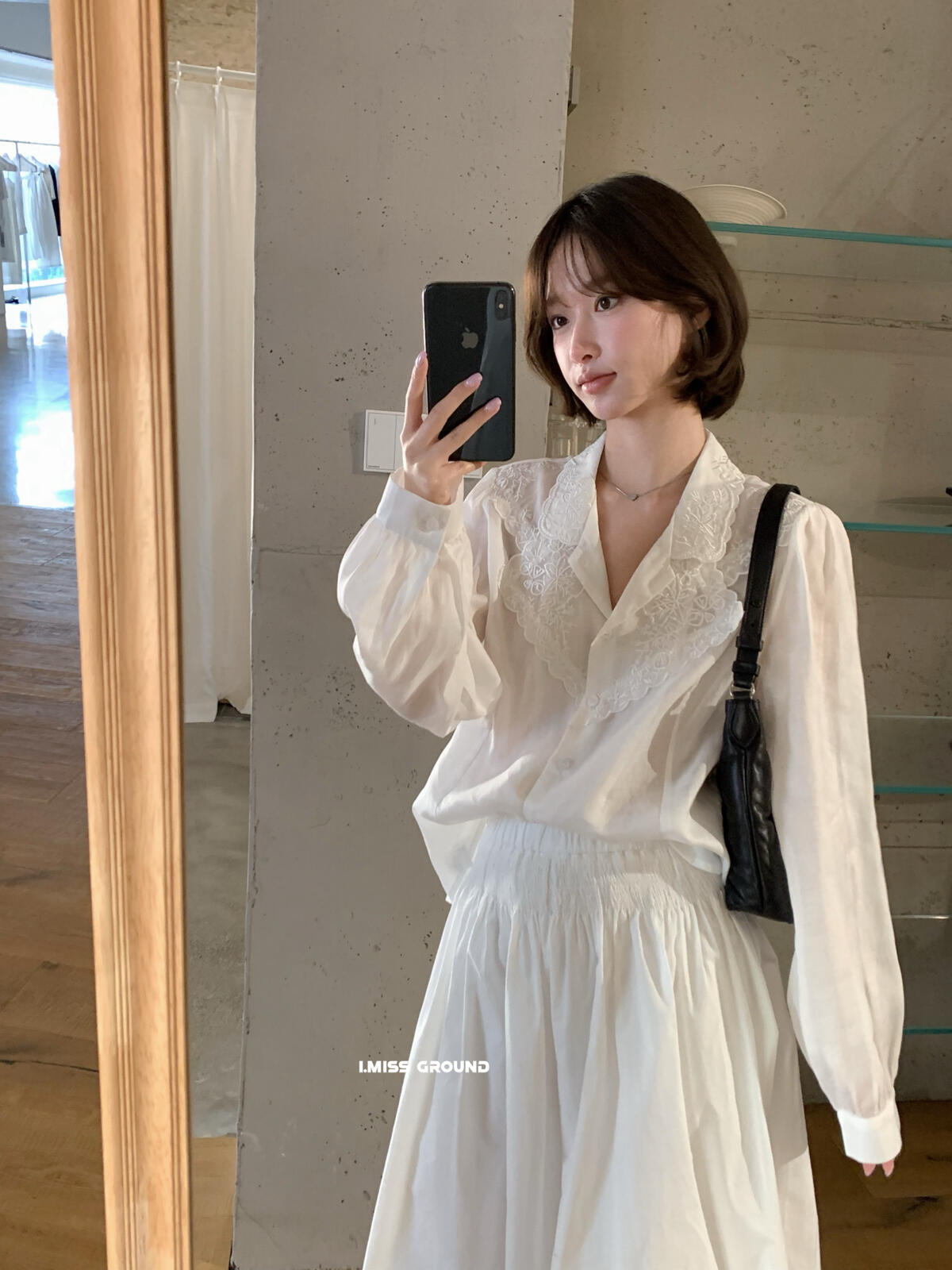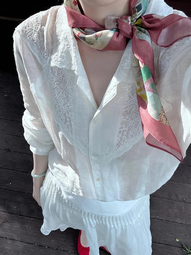雀说夏季春夏法式温柔风刺绣花朵百搭翻领长袖衬衫女WALR90655