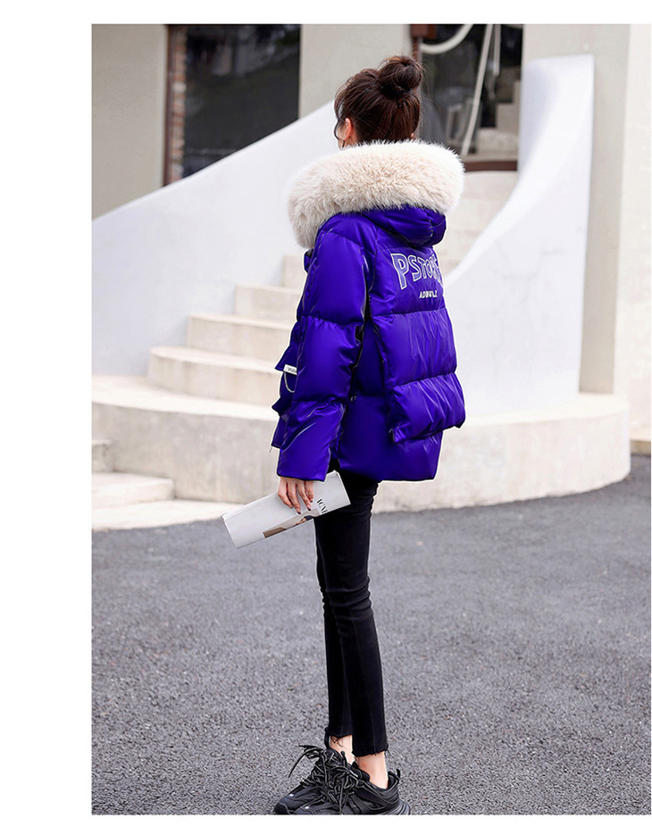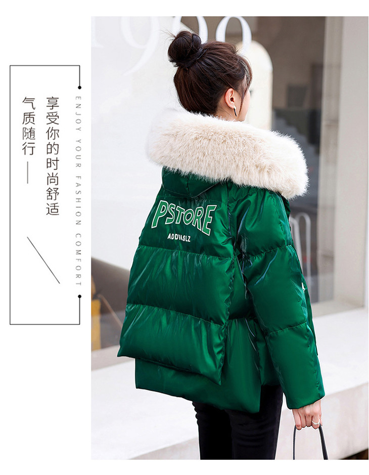冬款韩系时尚通勤短款加厚保暖字母印花连帽棉衣HR-WA16899
