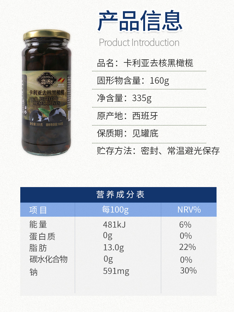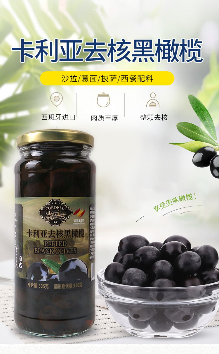 卡利亚去核黑橄榄335g 西班牙进口