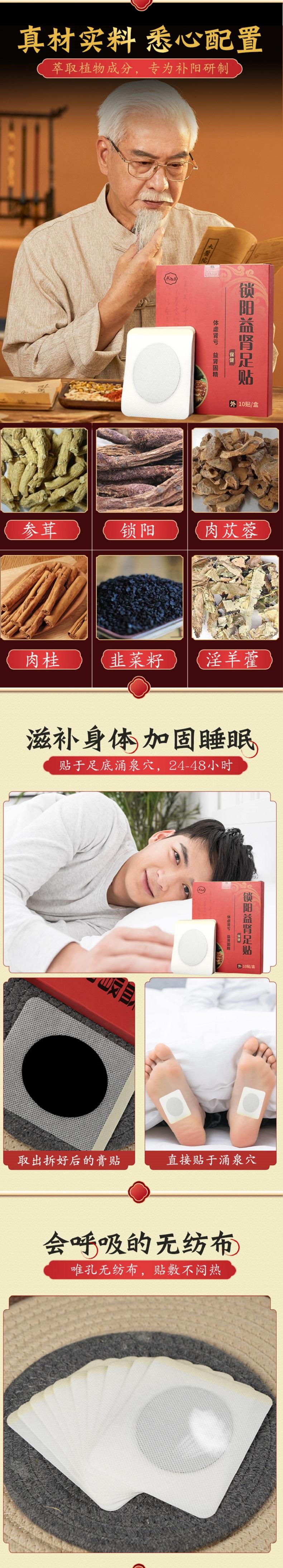 【重振雄风】锁阳益肾足贴温肾滋阳加固睡眠精力充沛恢复元气告别劳累身体疲乏10贴/盒