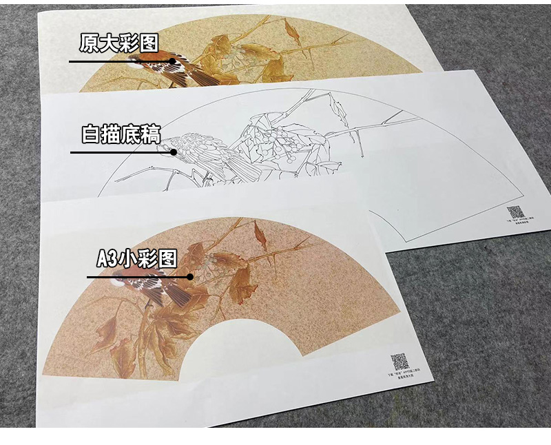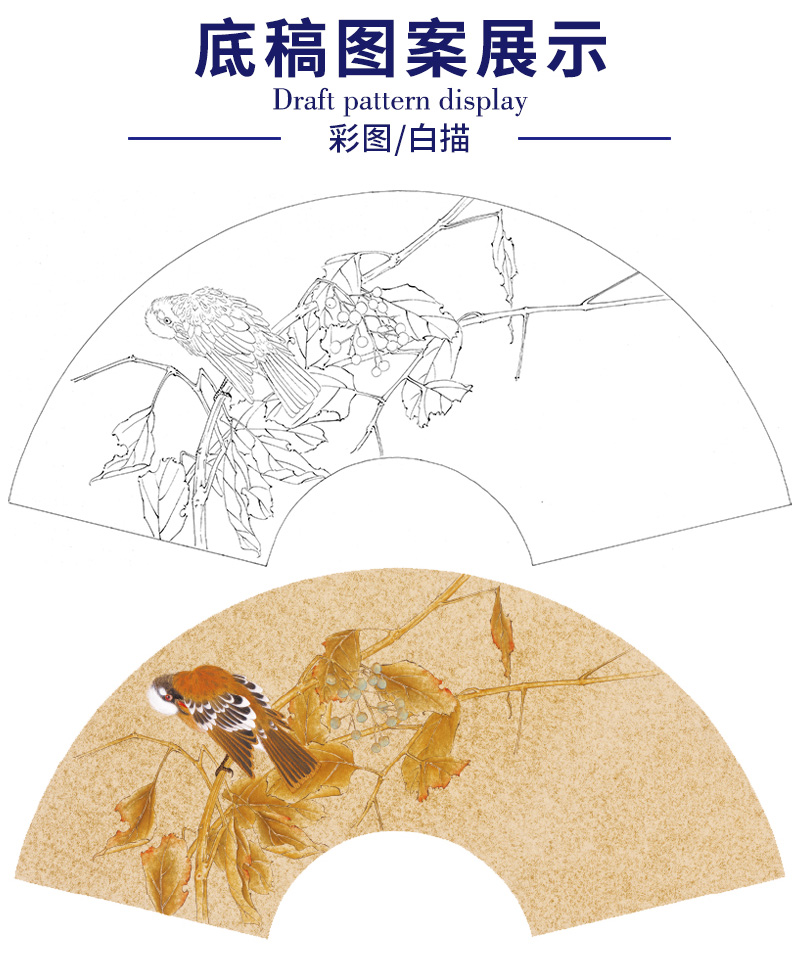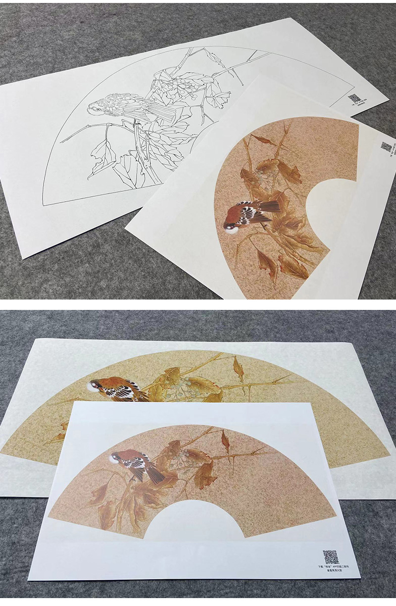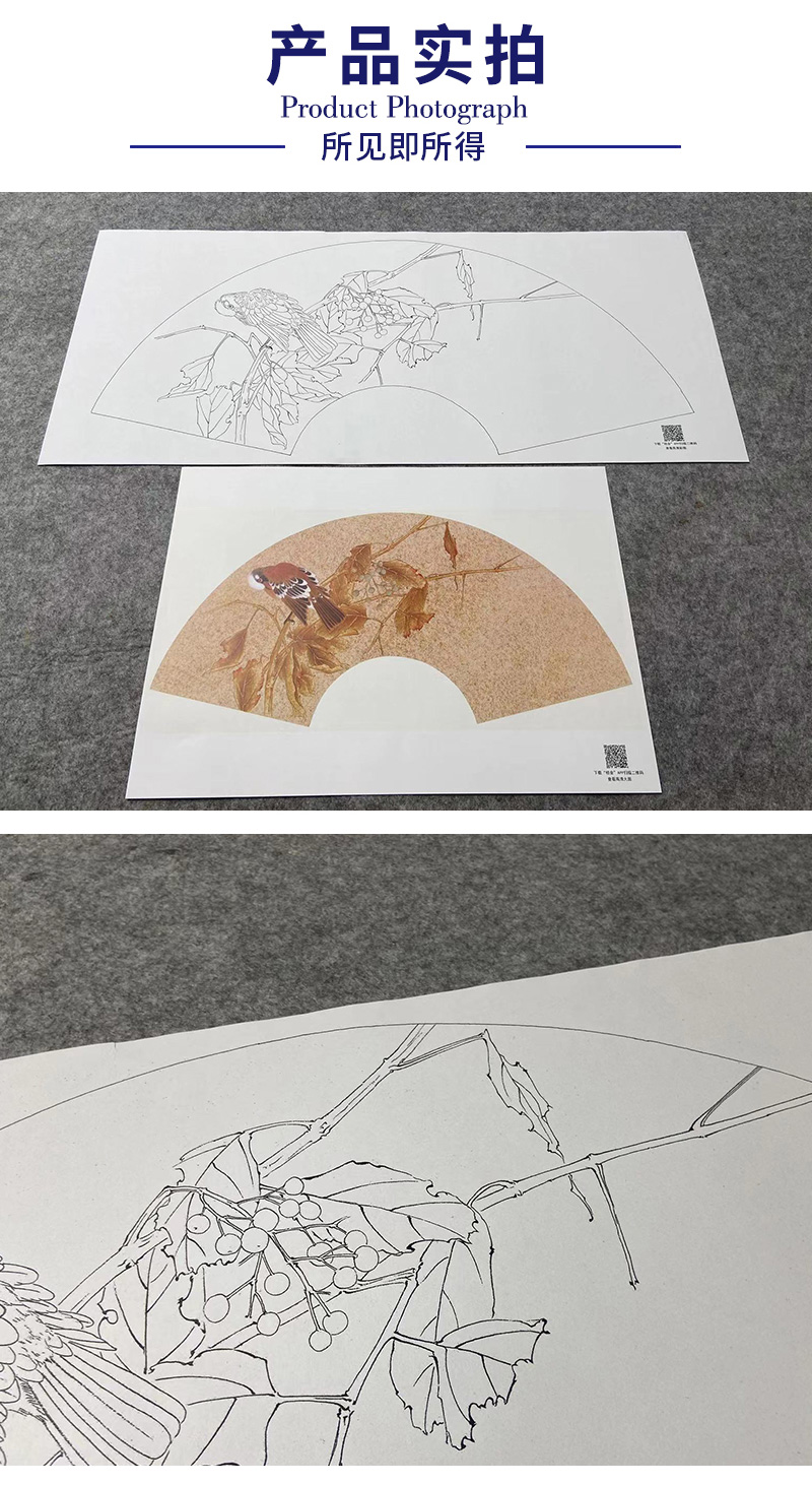 【大彩图】张建军工笔画白描底稿扇面小品临摹勾线花鸟线稿A369