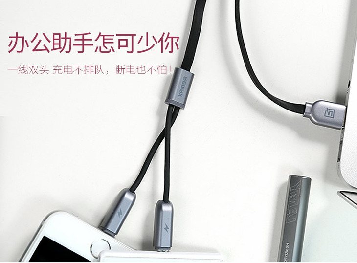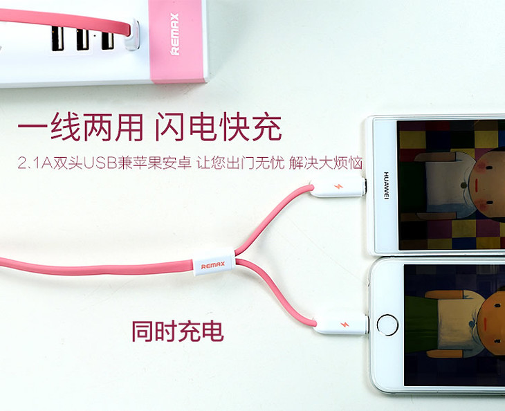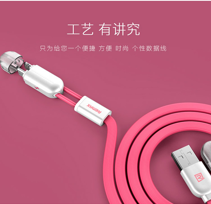 Remax数据线一拖二快充两用苹果6s7/7S安卓二合一充电线双头磁吸