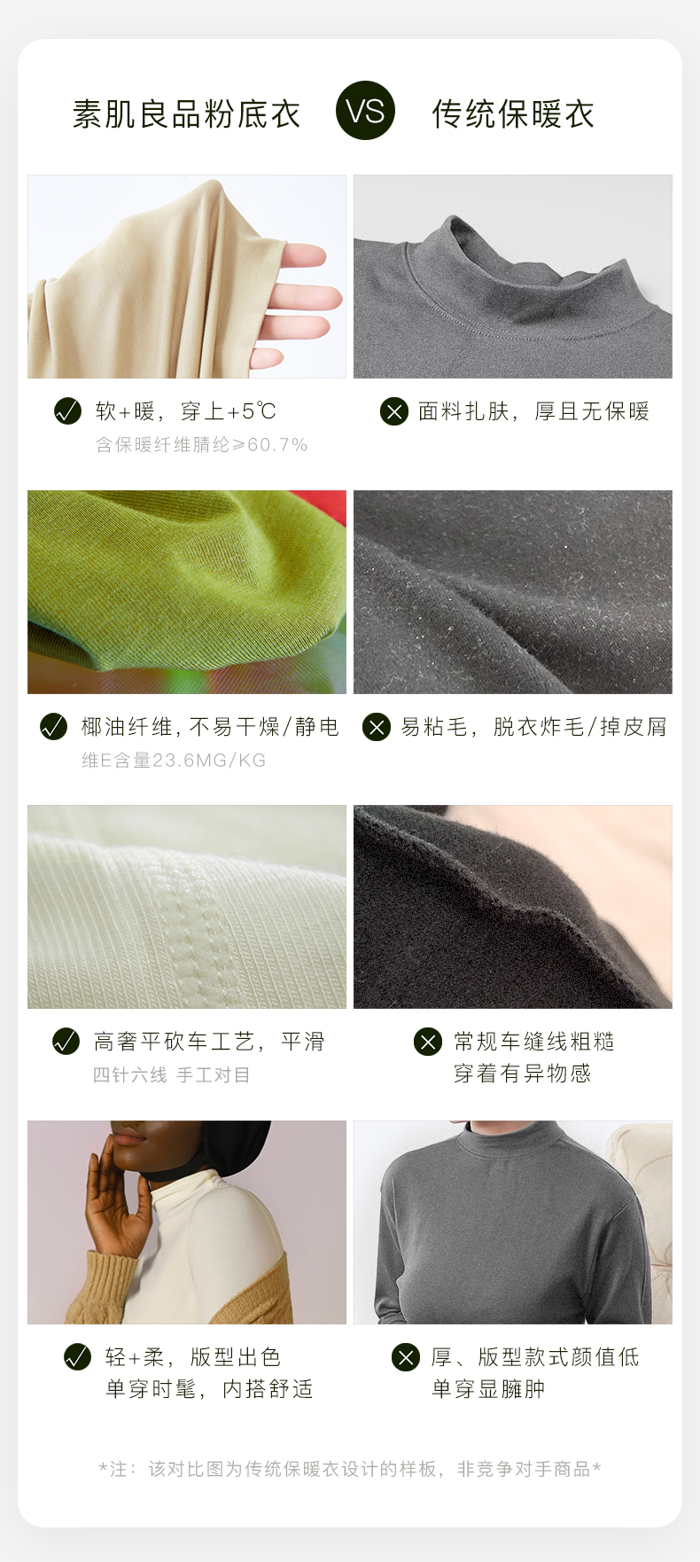 【E】素肌良品轻暖高领保暖上衣WC018A