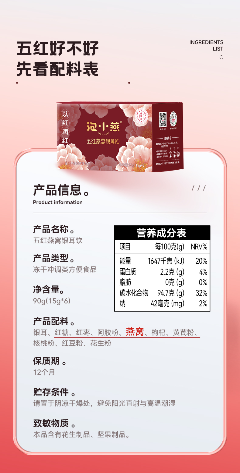 【作家十二开团 心意甄选】208元到手6盒五红燕窝饮送玫瑰焖烧杯1个+礼品袋