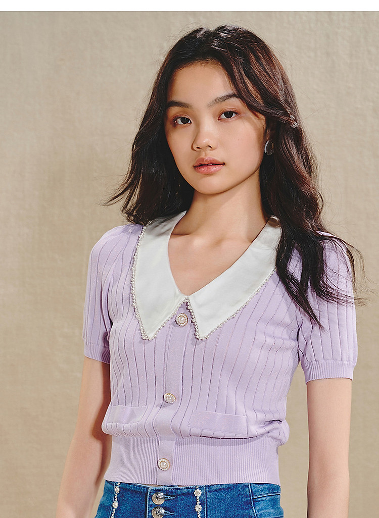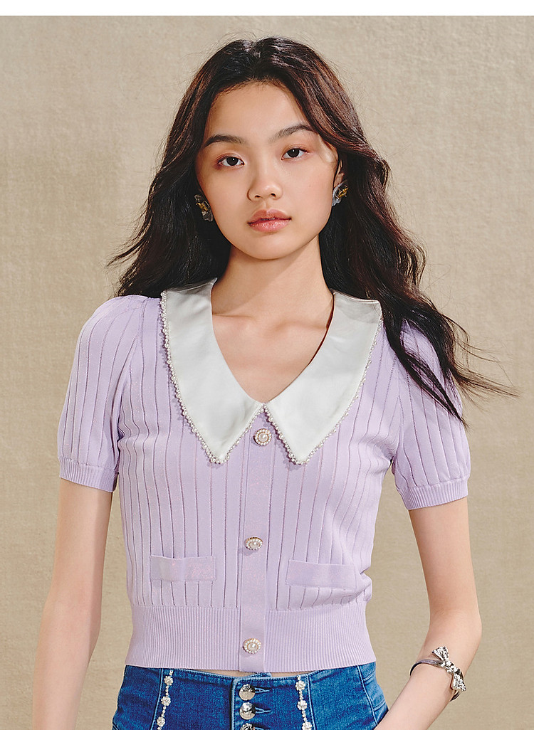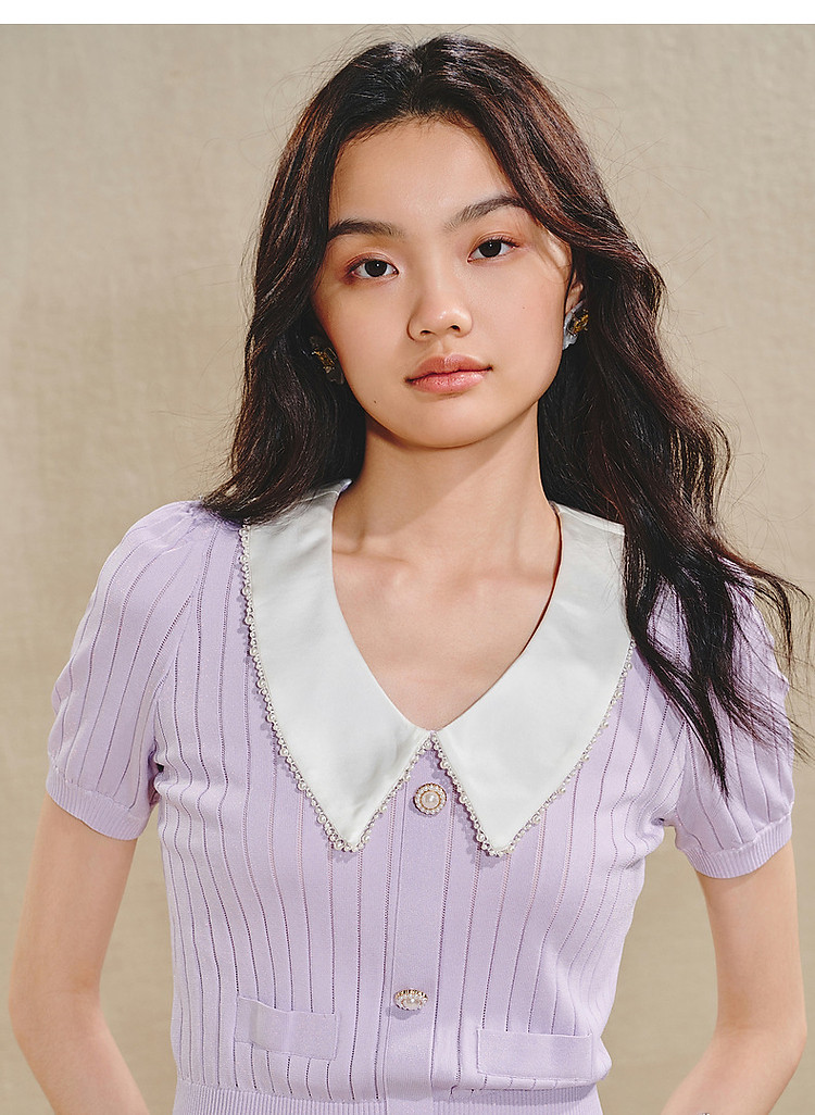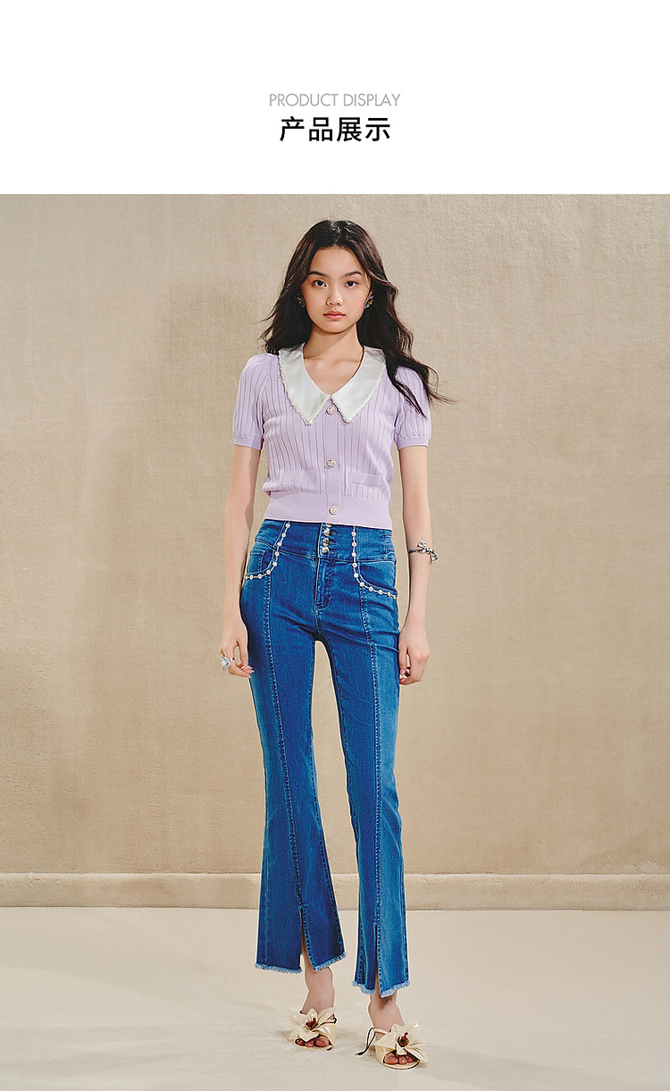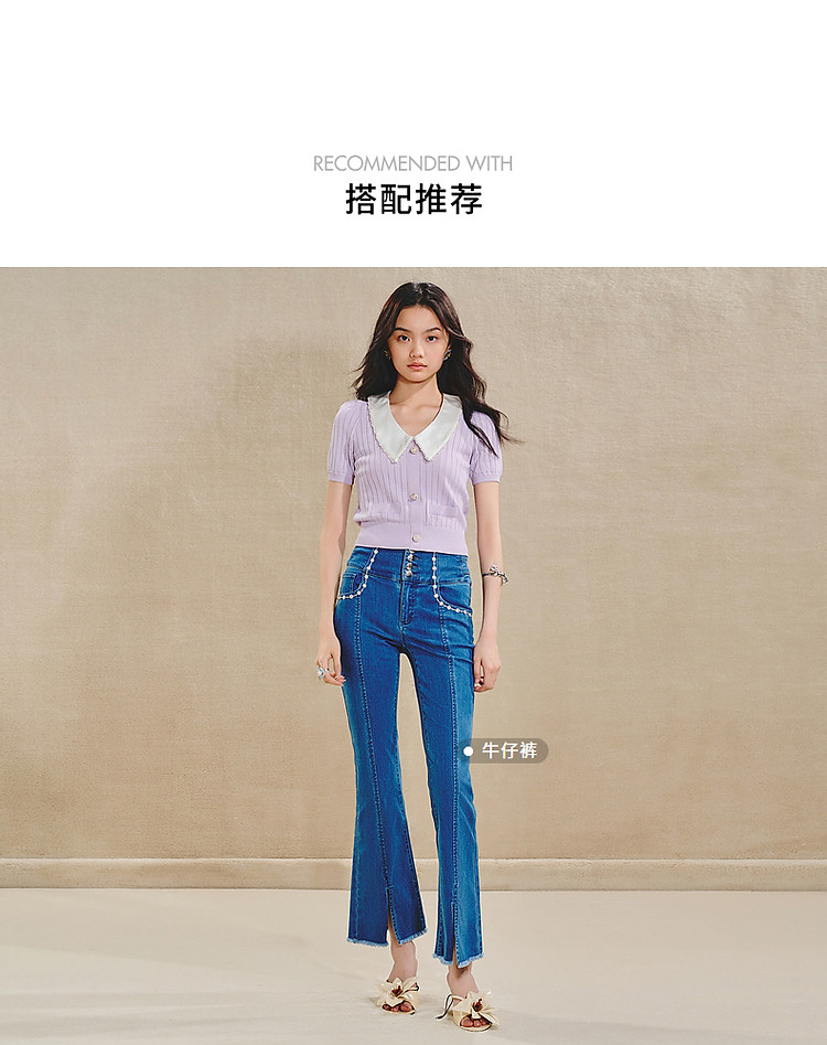复古翻领毛衫女春款修身针织上衣