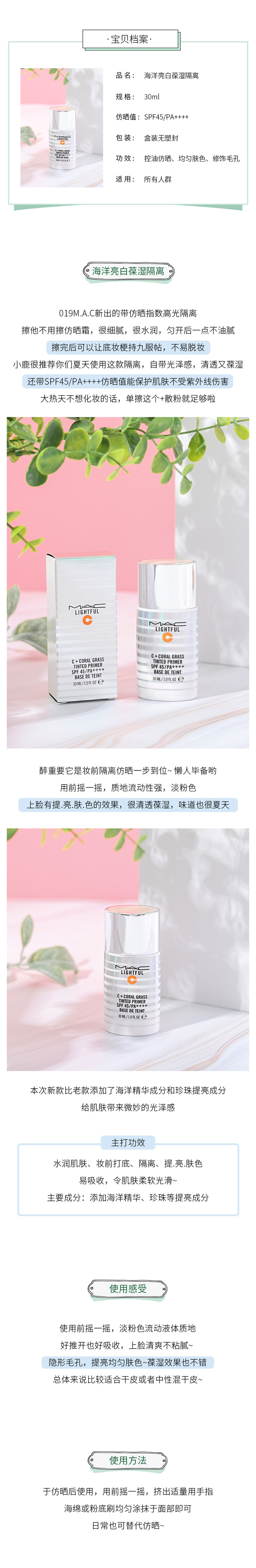 MAC魅可海洋亮白保湿隔离妆前乳CC霜30ml