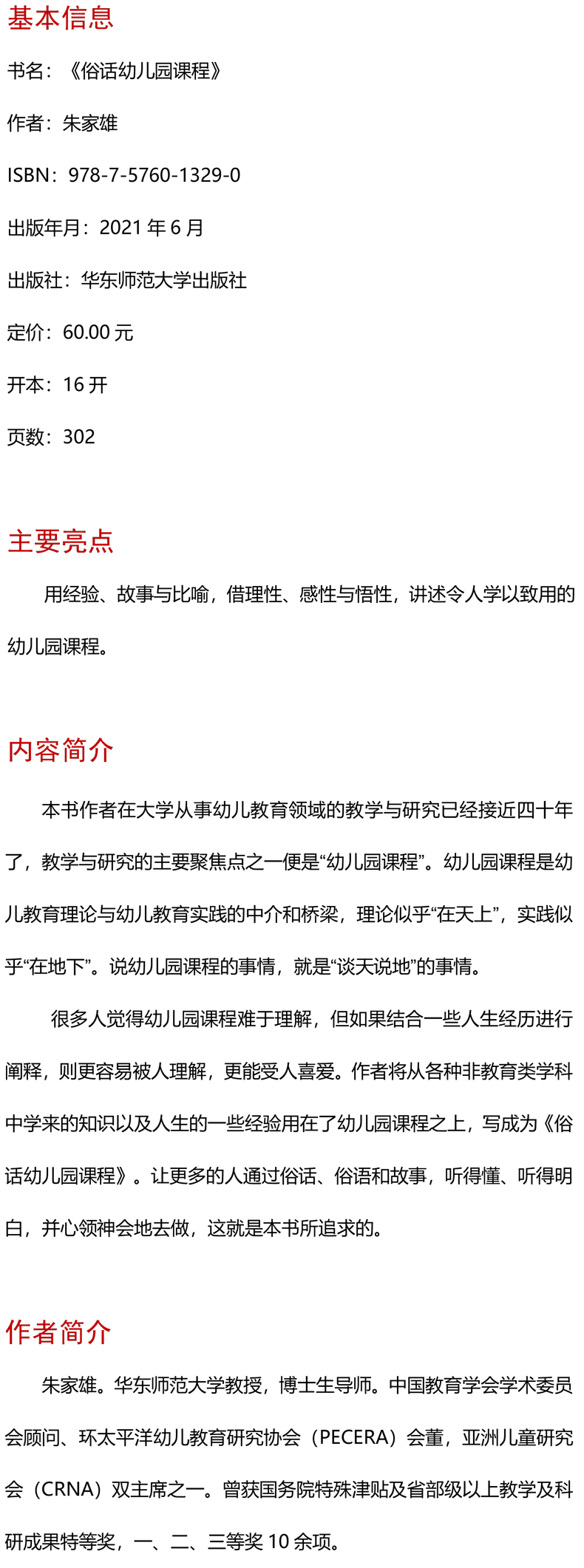 俗话幼儿园课程 朱家雄著 教育心理 适用学前教育专业