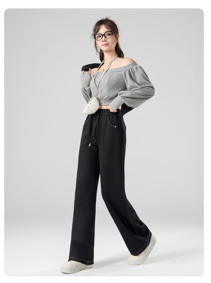 冬季加绒加厚弹力针织软牛仔外穿阔腿裤休闲裤直筒裤822