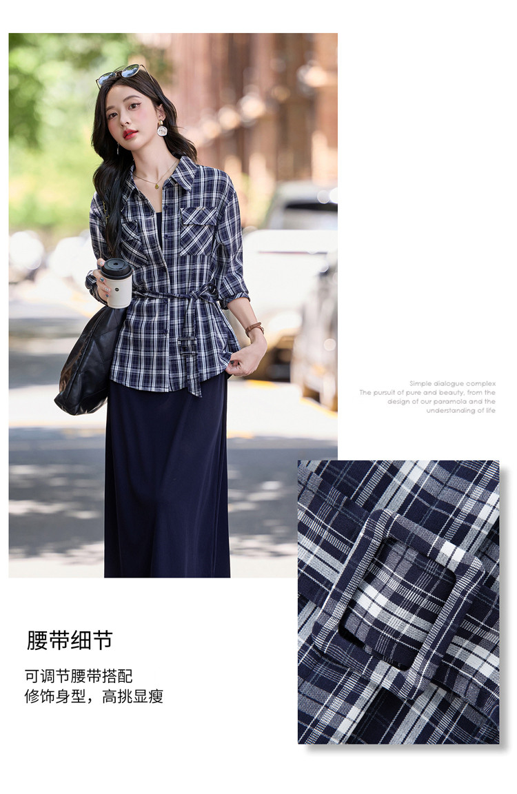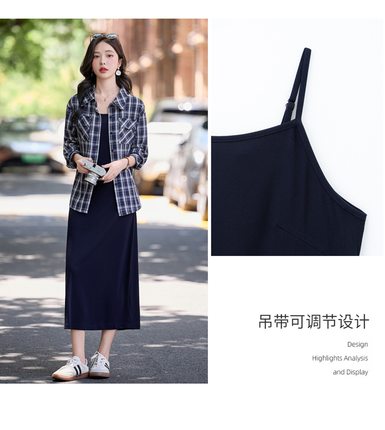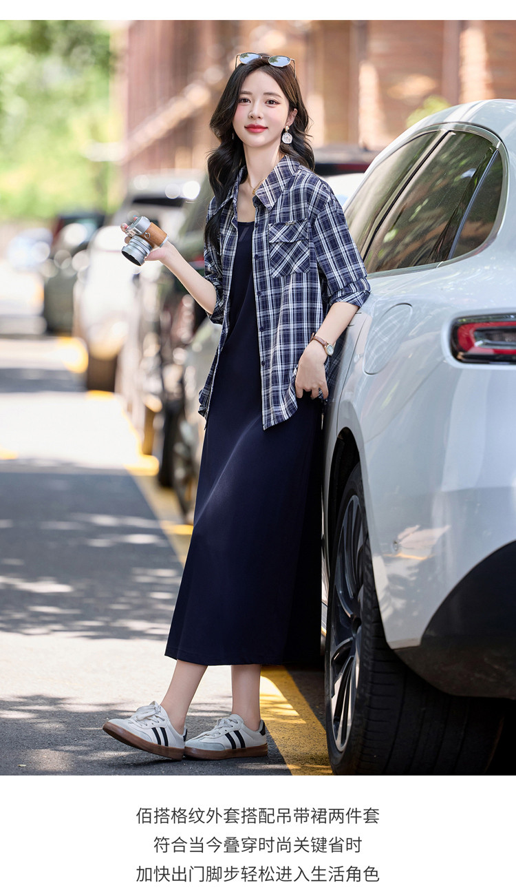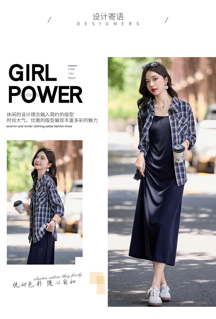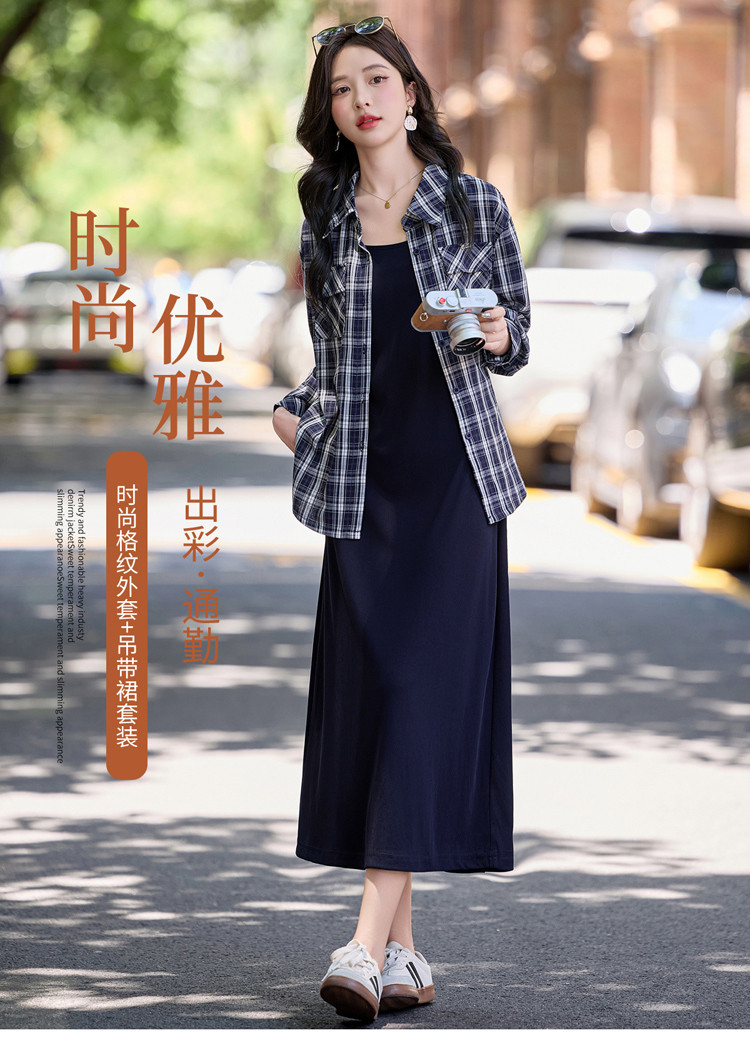 【预售3天】PY 时尚格纹衬衫+吊带裙套装 &MY2651