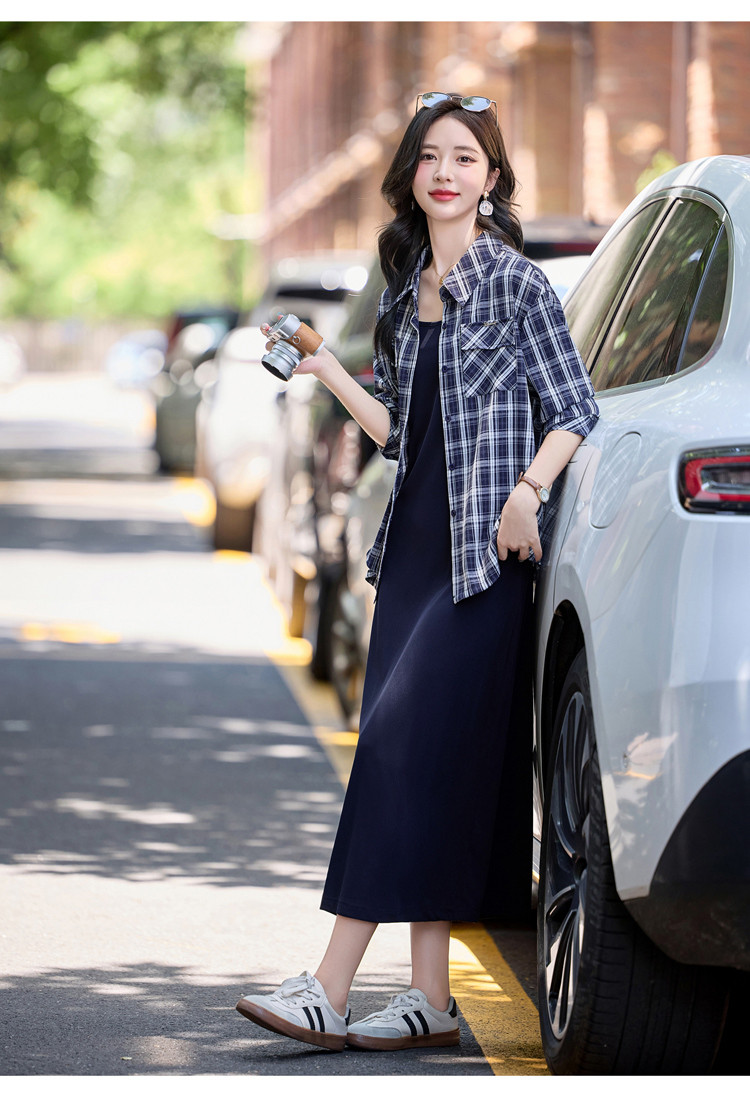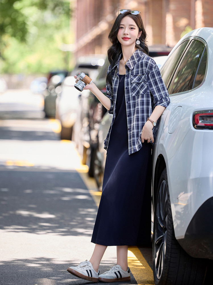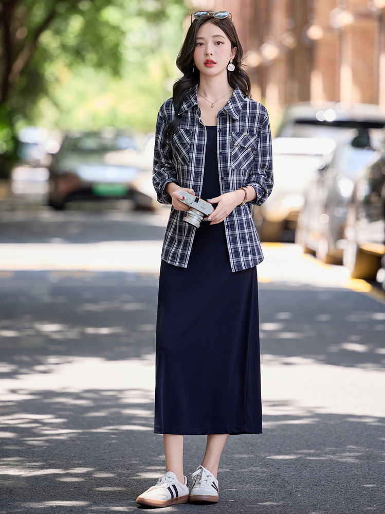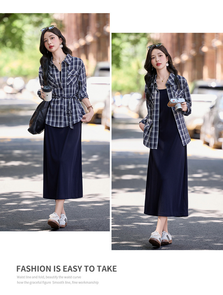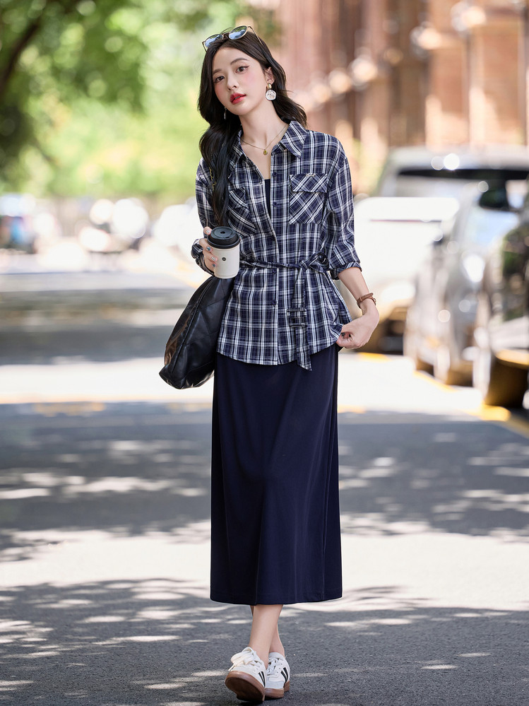 【预售3天】PY 时尚格纹衬衫+吊带裙套装 &MY2651
