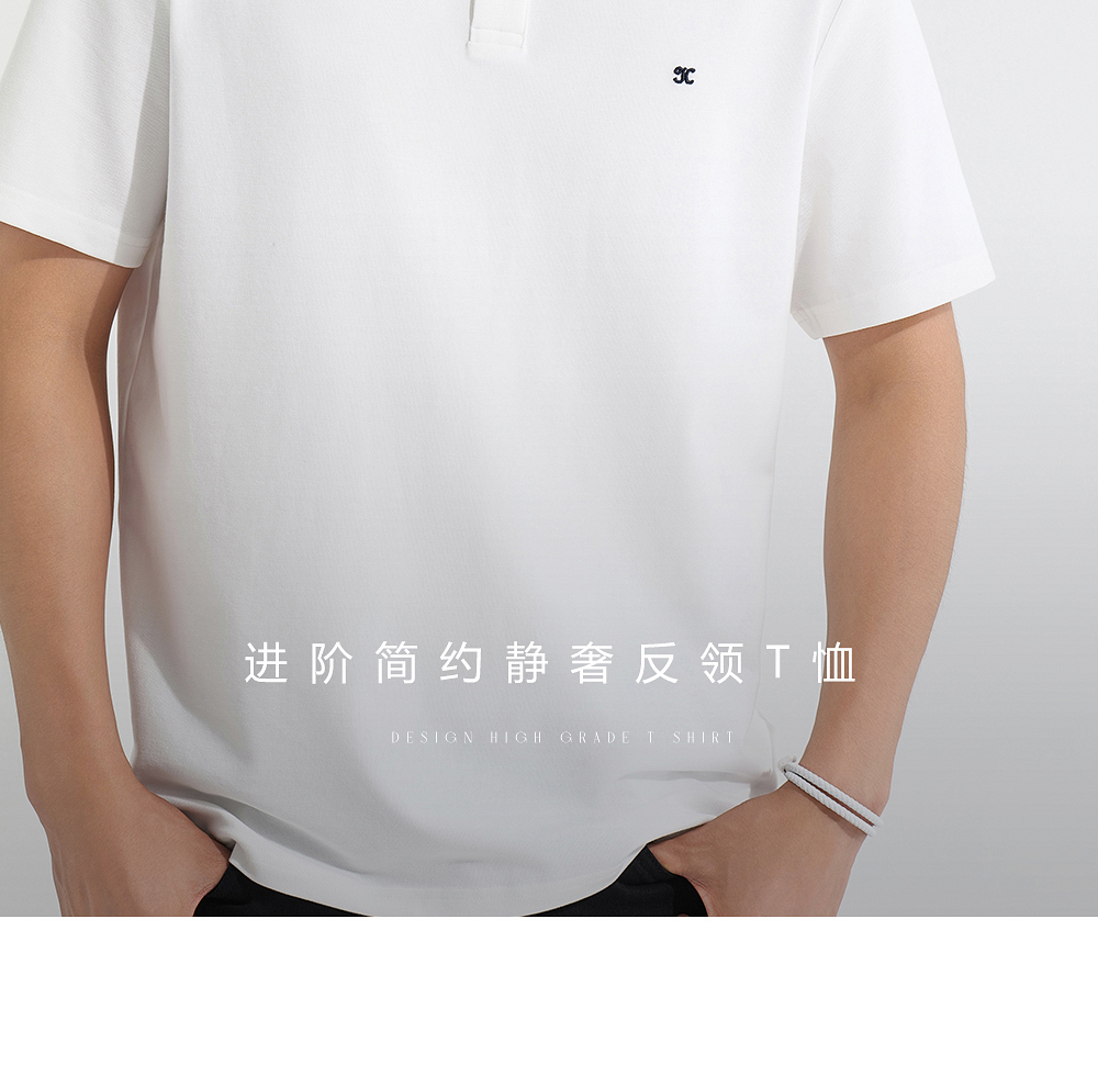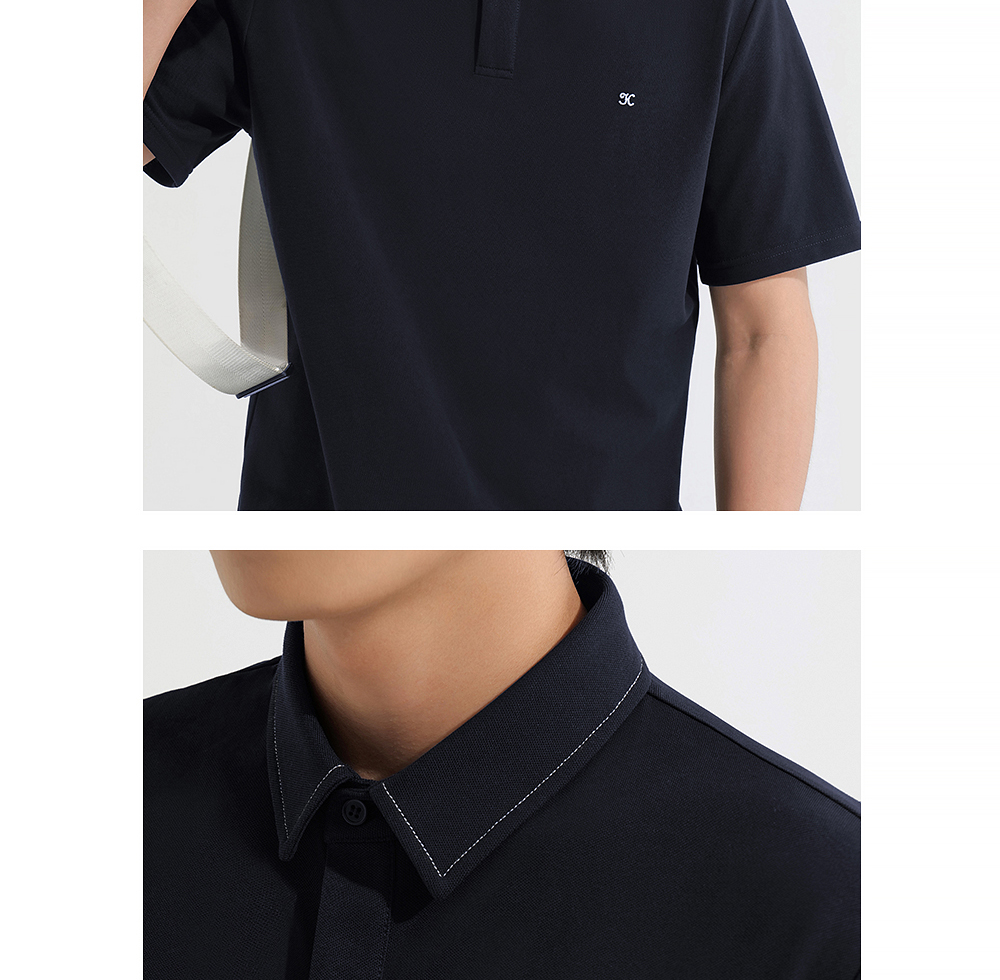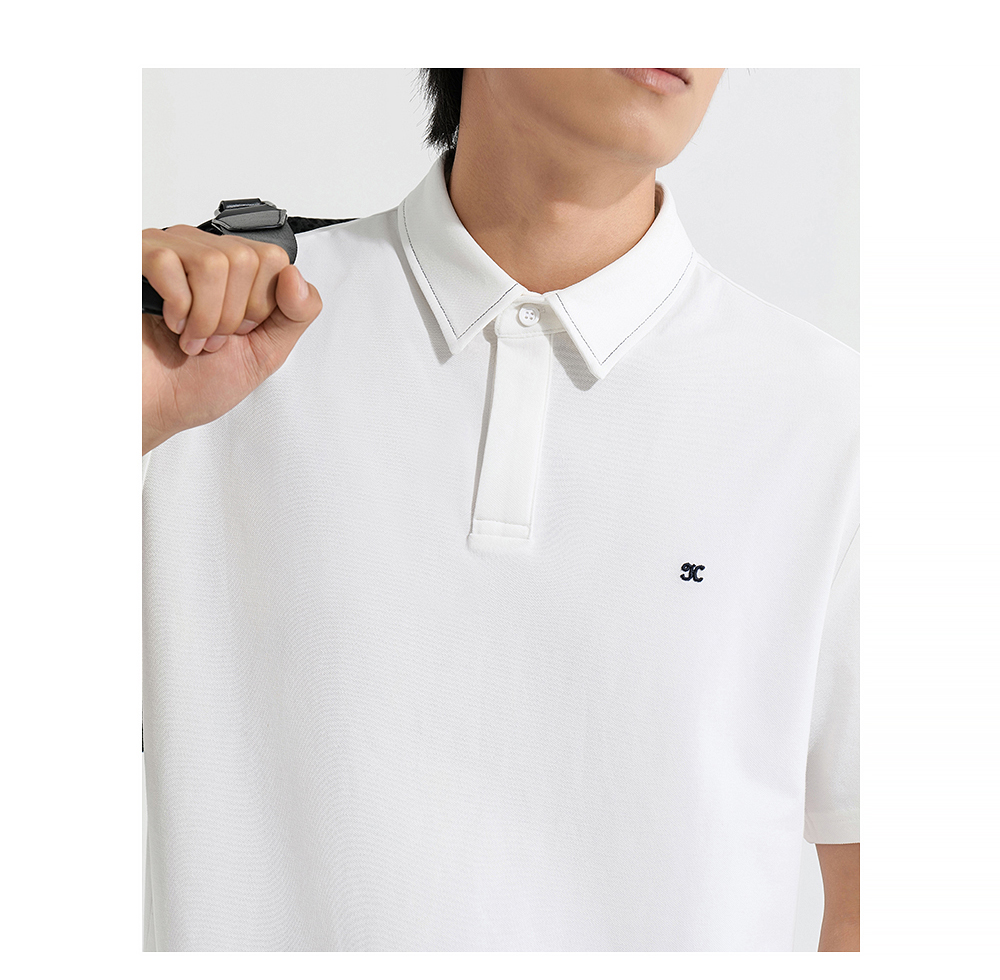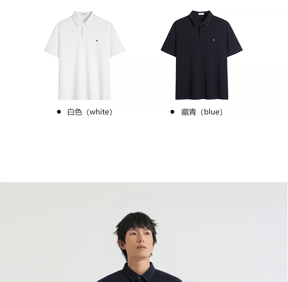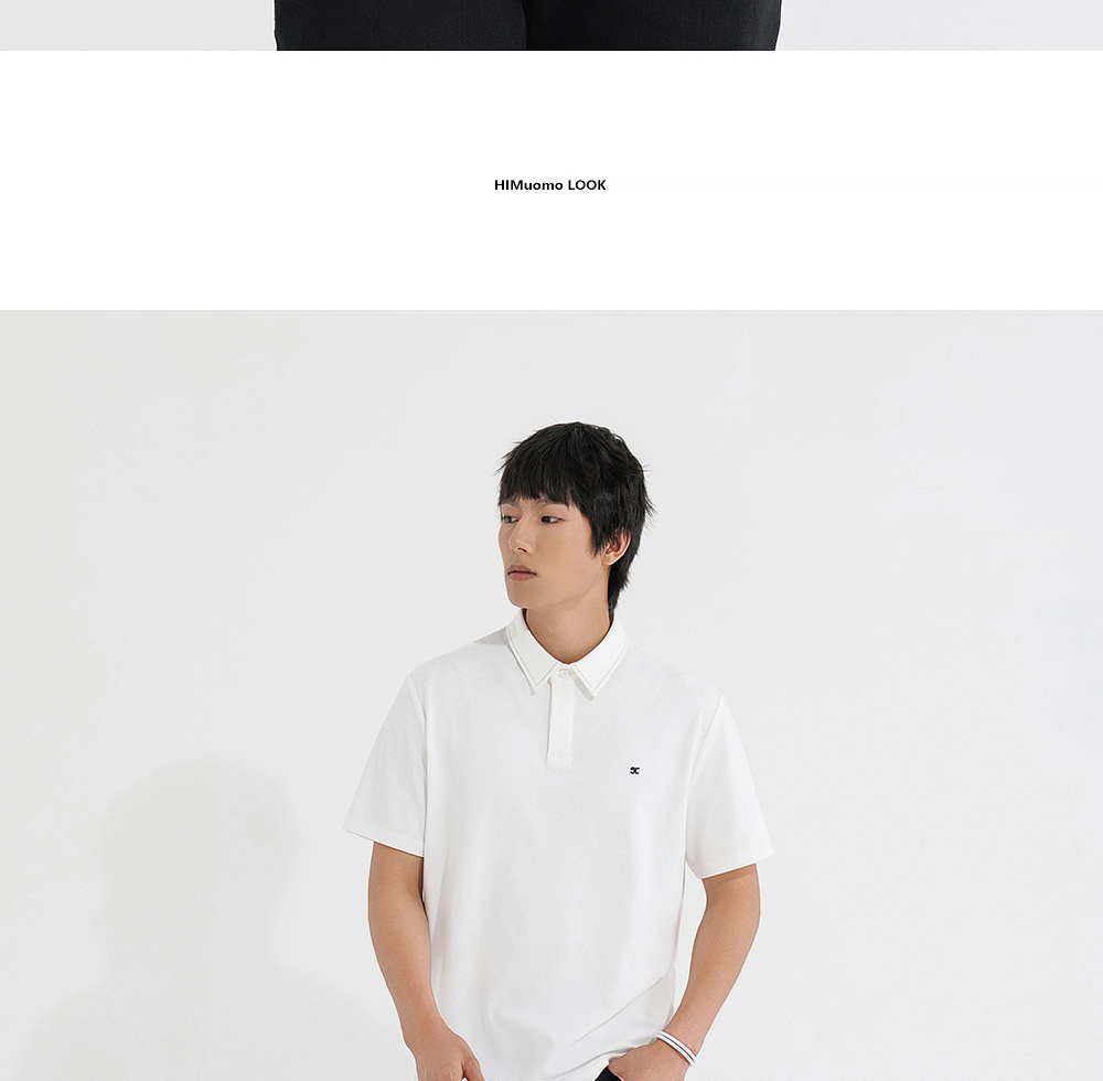 HIM漢崇 日常商务休闲反领T恤简约撞色小绣花短袖上衣 2025春夏