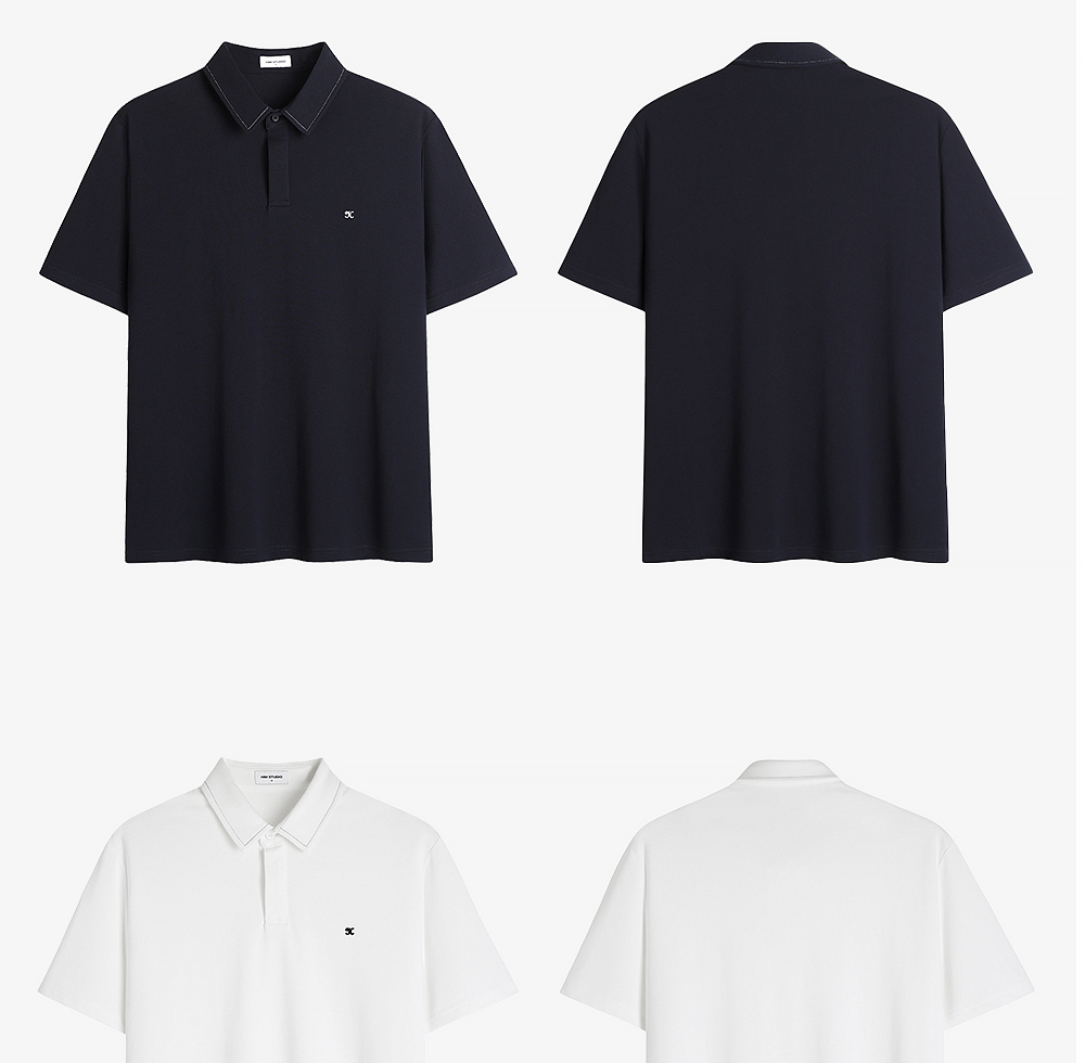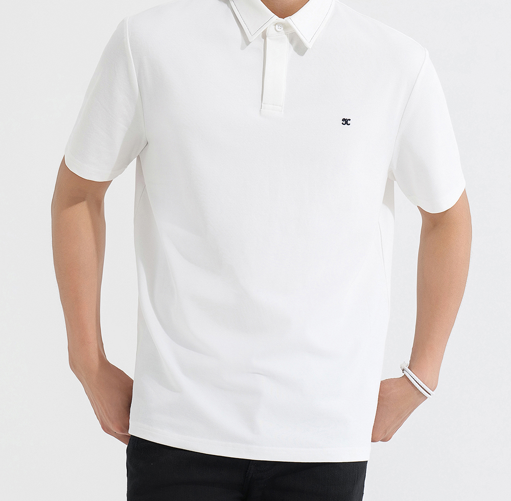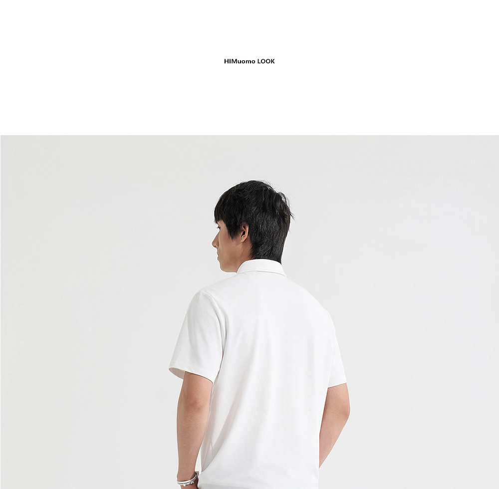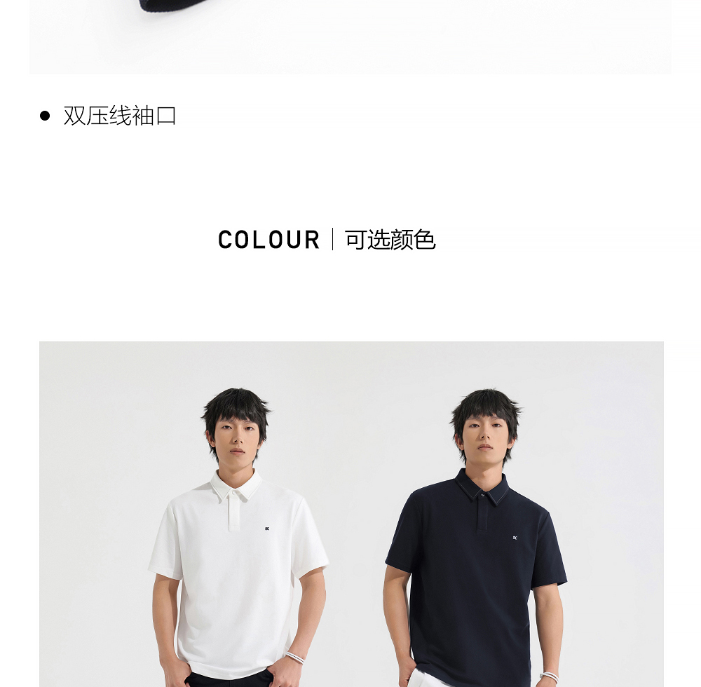 HIM漢崇 日常商务休闲反领T恤简约撞色小绣花短袖上衣 2025春夏