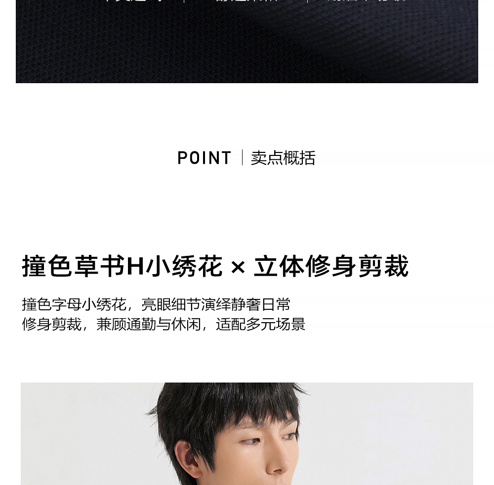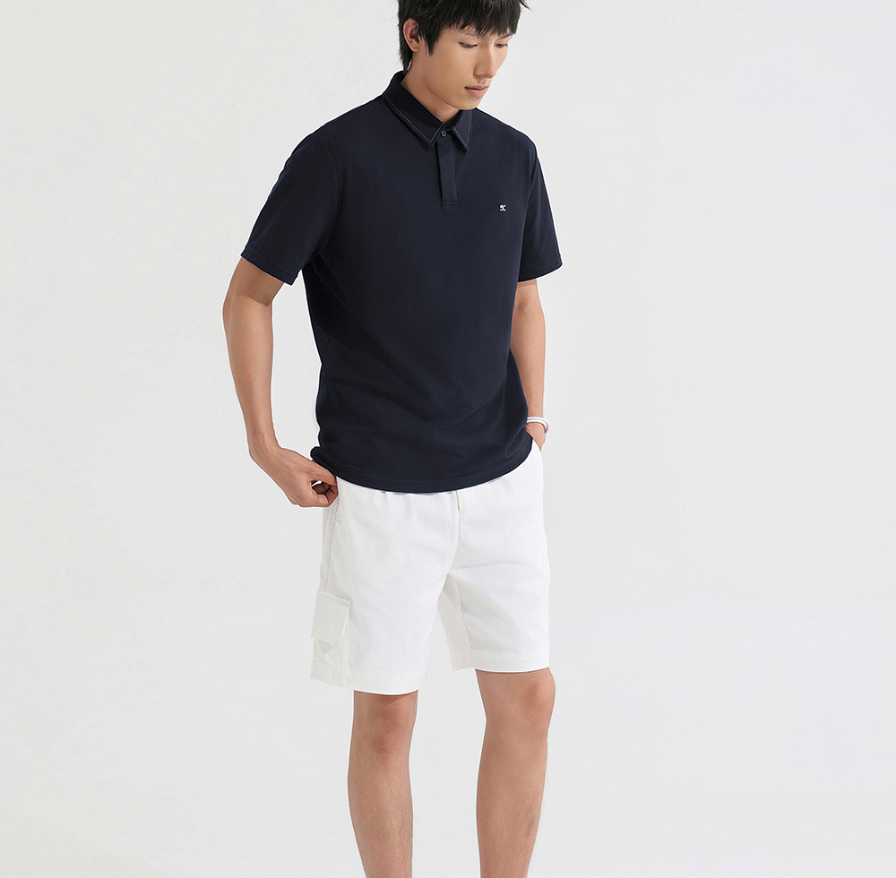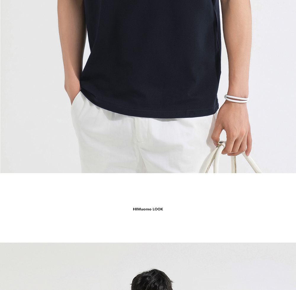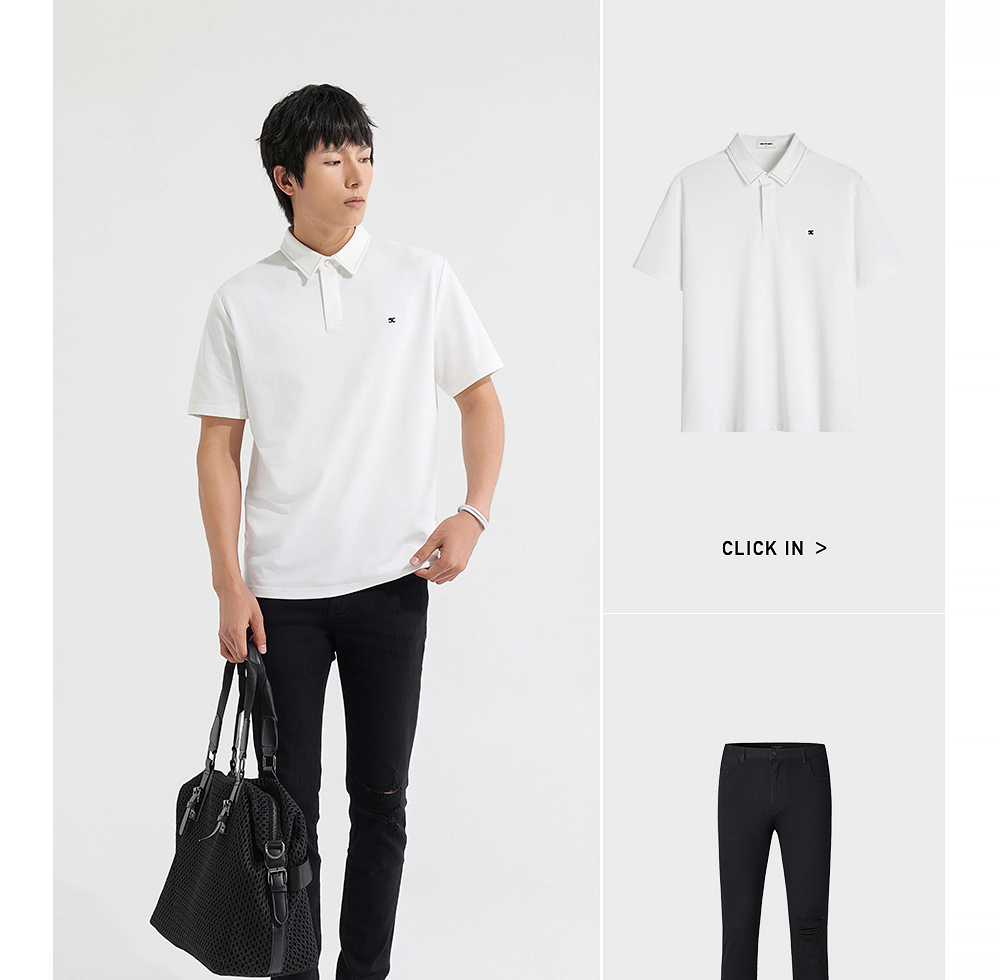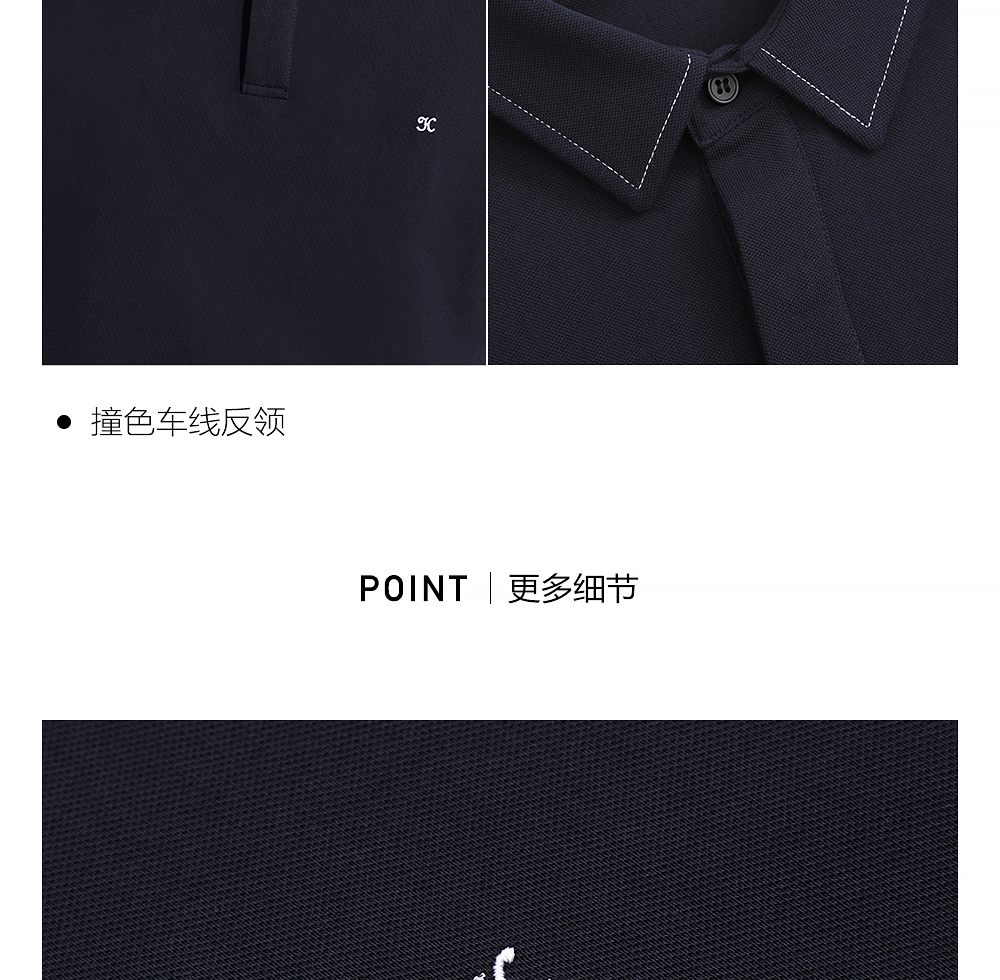 HIM漢崇 日常商务休闲反领T恤简约撞色小绣花短袖上衣 2025春夏