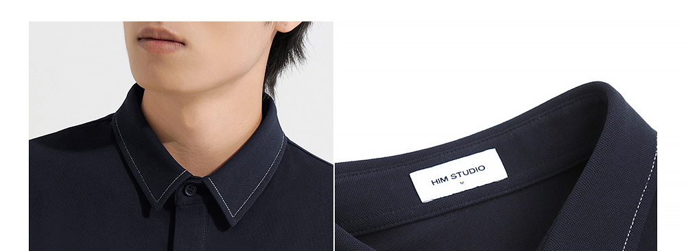 HIM漢崇 商务斯文修身短袖POLO简约哑光烤漆金属翻领T恤 2025夏季