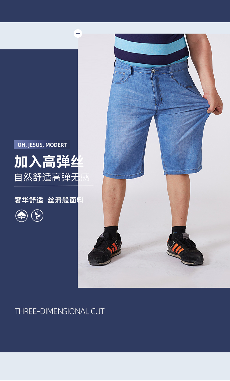 超大码【新款DMR】大依优型大码商务休闲牛仔短裤加肥加大胖子宽松高弹五分裤夏季男