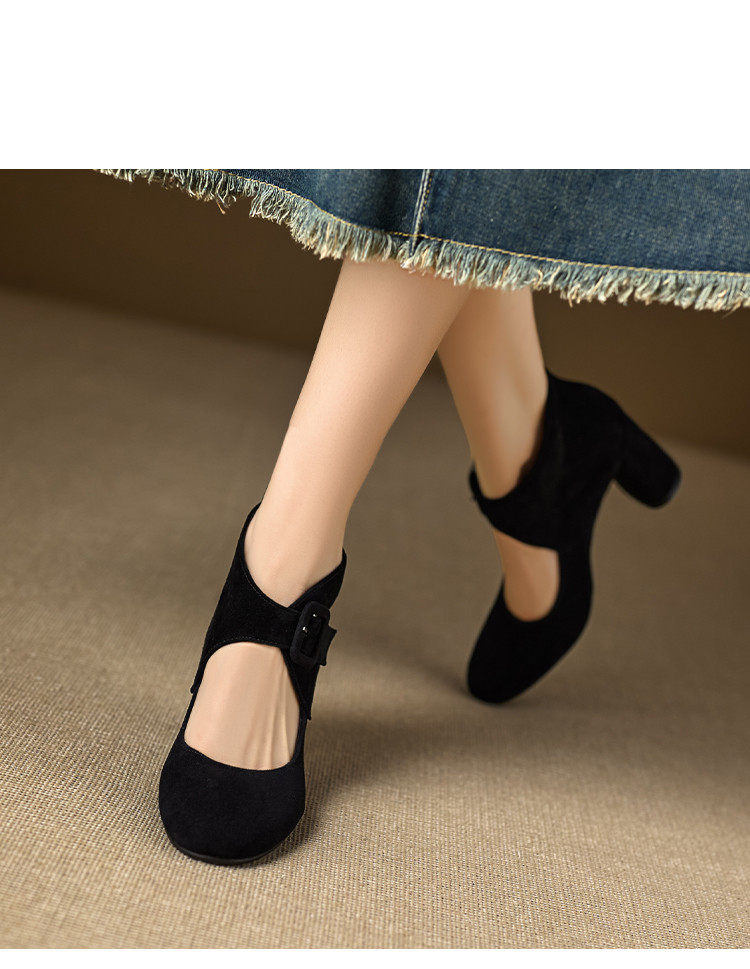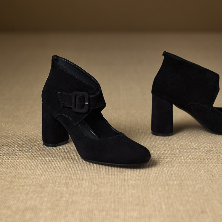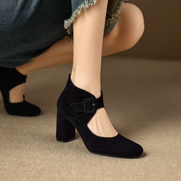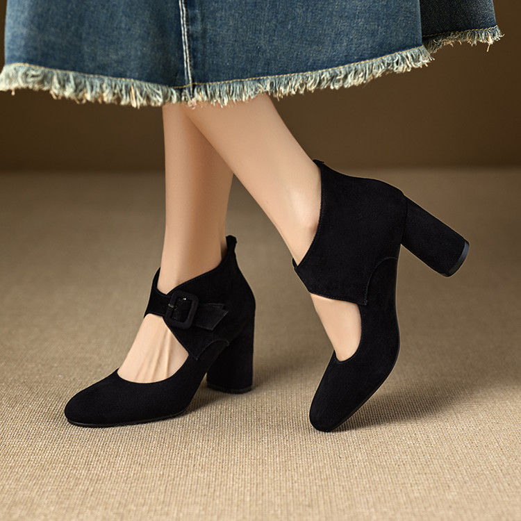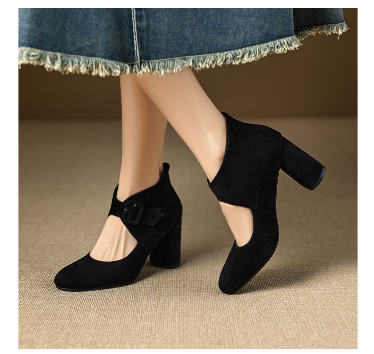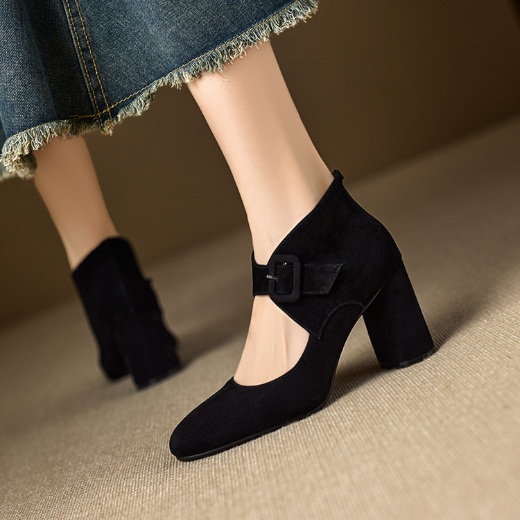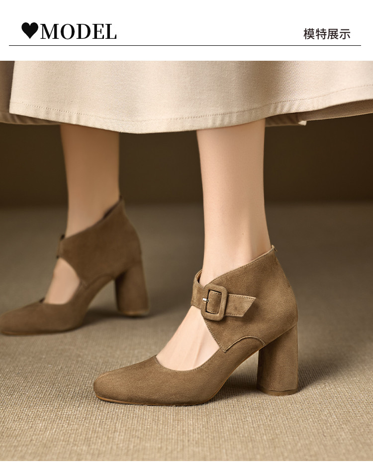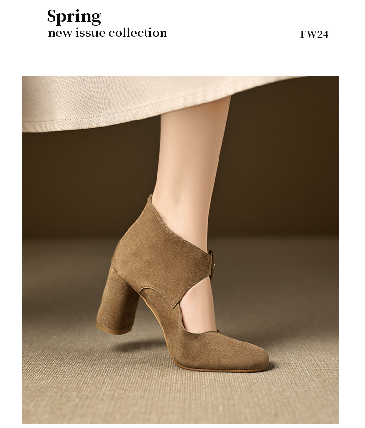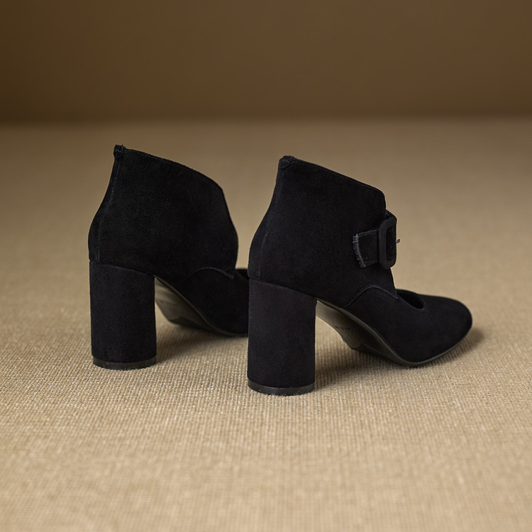 【预售5天】法式羊琼皮镂空性感短靴女春秋新款圆头粗跟高帮单鞋高跟气质踝靴MNLS&D2551