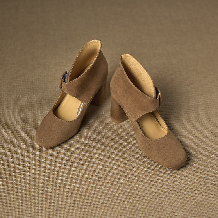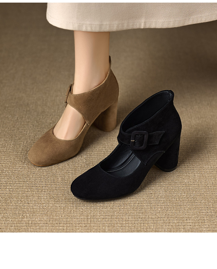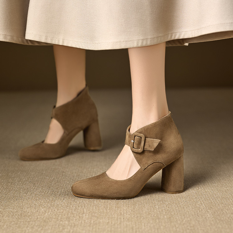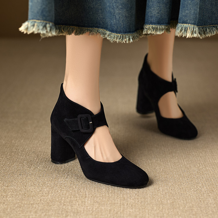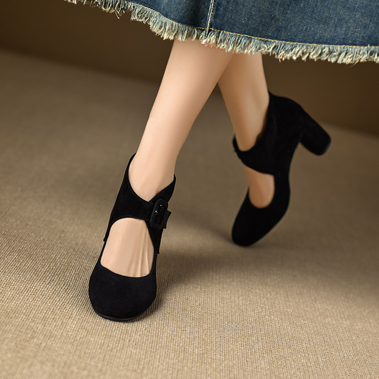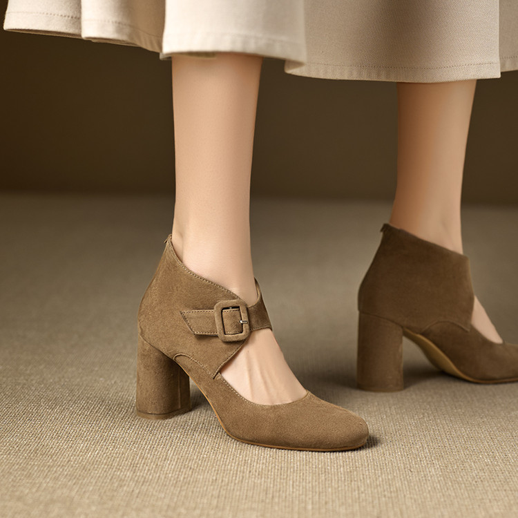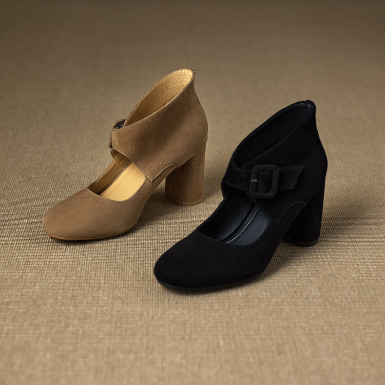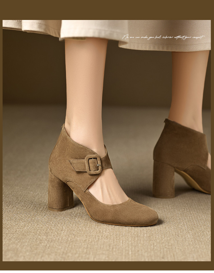 【预售5天】法式羊琼皮镂空性感短靴女春秋新款圆头粗跟高帮单鞋高跟气质踝靴MNLS&D2551