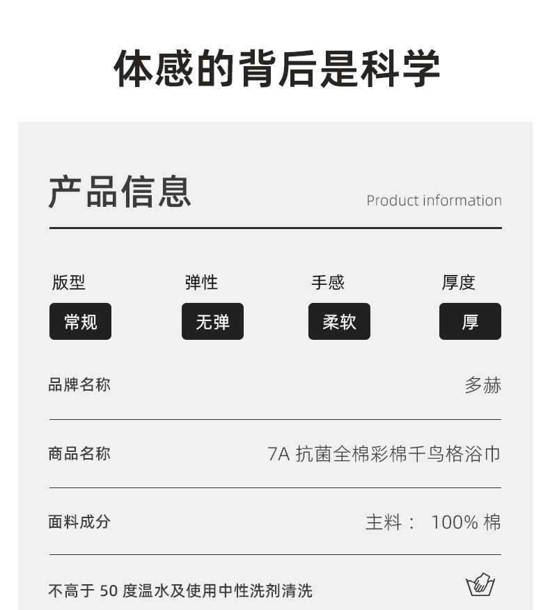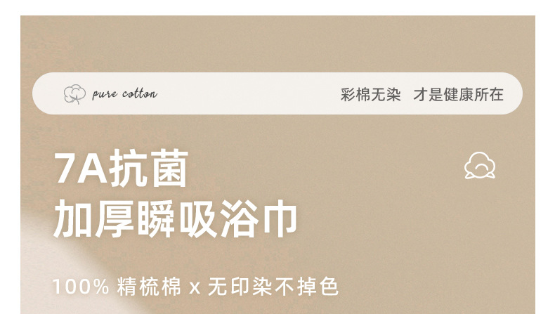 丁摩 彩棉提花浴巾7A抗菌全棉500克织提花柔软吸水加厚高克重沙滩巾5ZF-3105