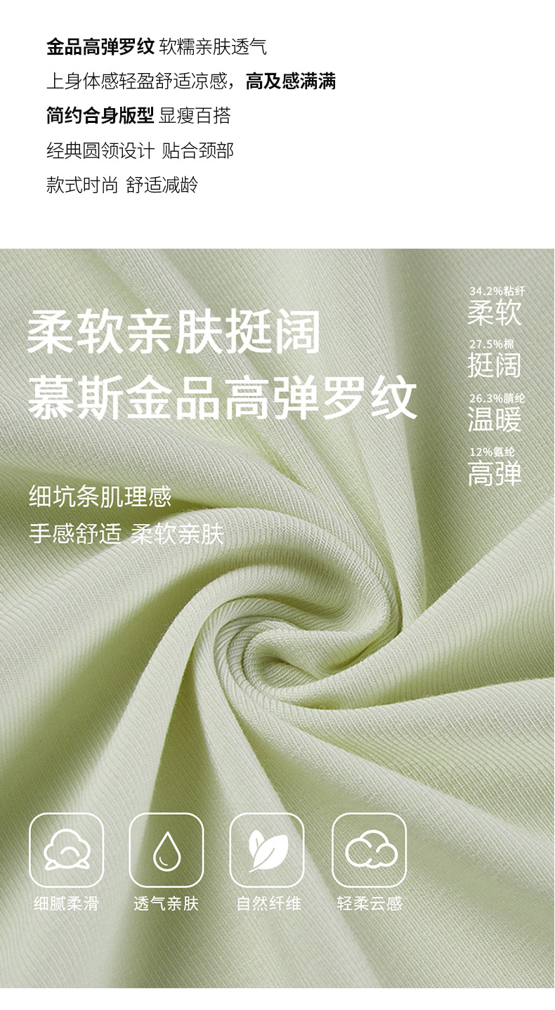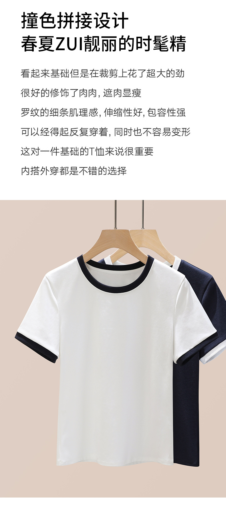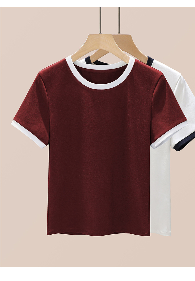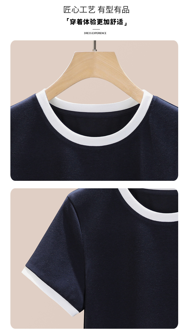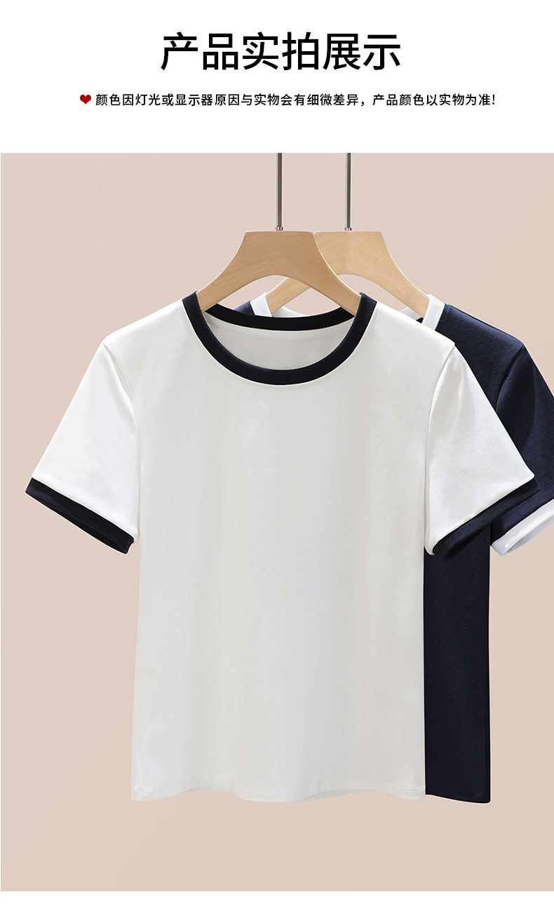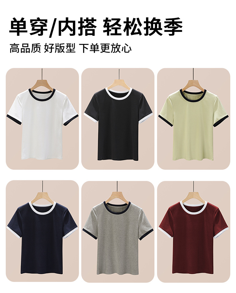 丁摩 盐系撞色拼接弹力正肩上衣新款高端灰色圆领短袖t恤女夏季5ZF-719