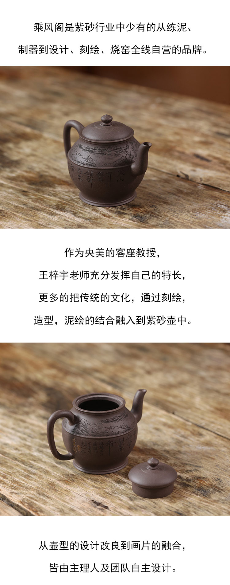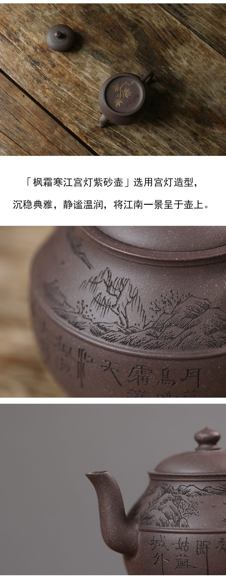茶香记 乘风阁 天青泥【枫霜寒江】宫灯紫砂壶 茶壶 沉稳典雅 功夫茶具