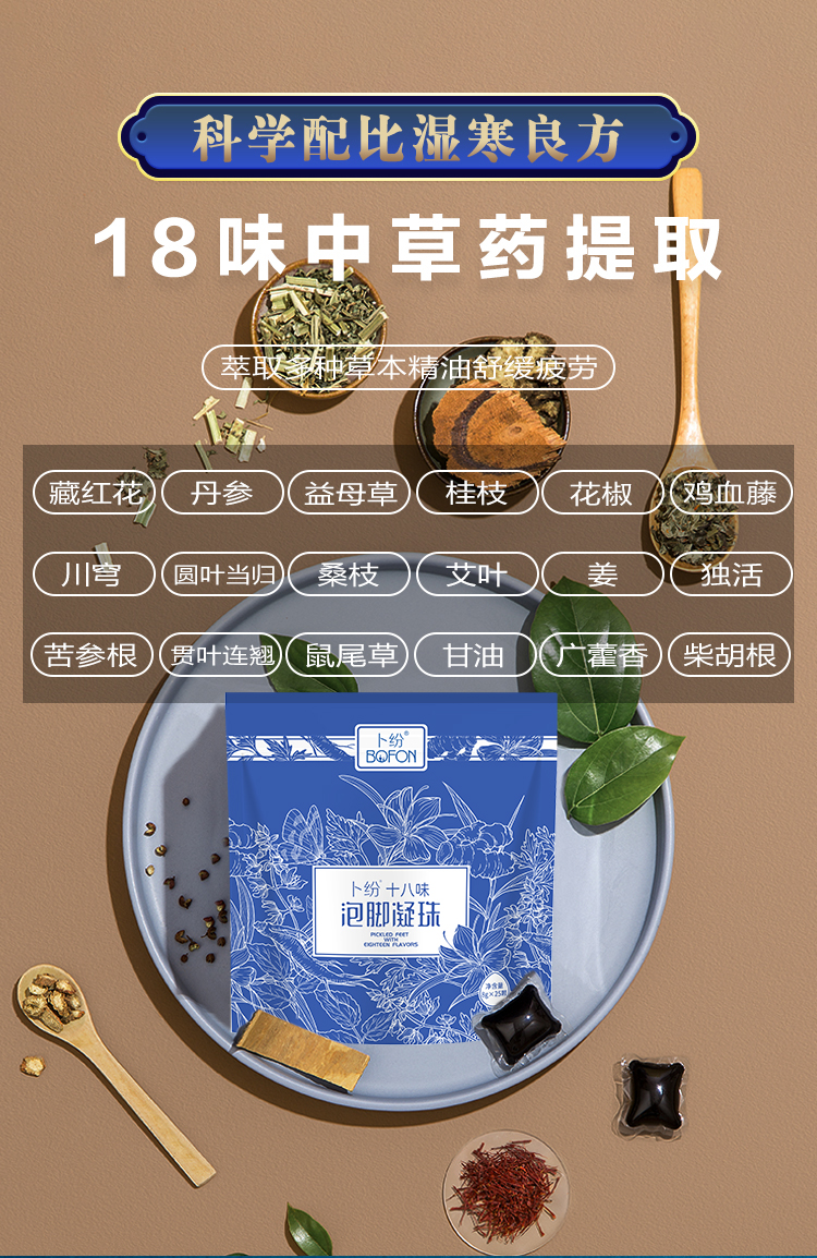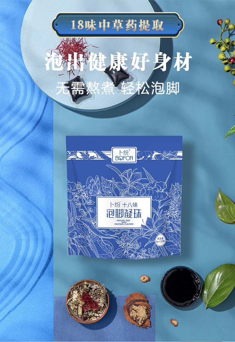 【卜纷十八味泡脚凝珠】浓缩凝珠以一敌百十八味泡脚凝珠18味药材精确配比一泡即溶缓解疲劳