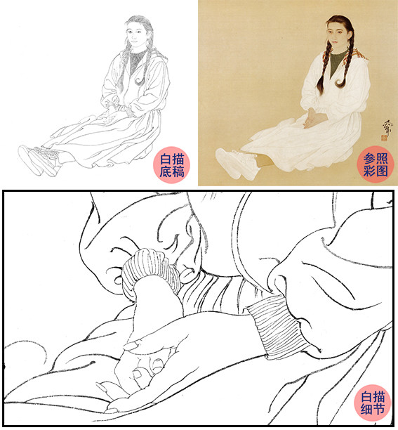 何家英工笔现代人物白描底稿《若云》斗方小品册页-多种白描尺寸可选-ZV24