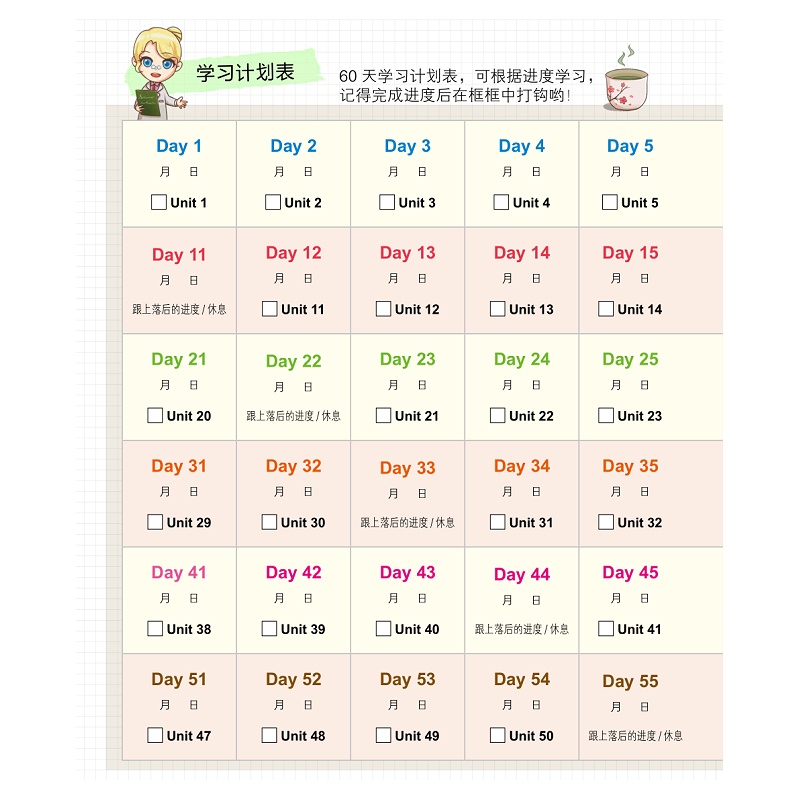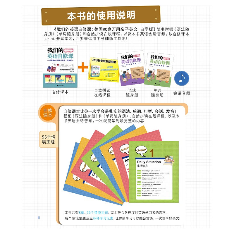 专为少儿英语定制的自修课本,让你从发音、单字、文法到轻松开口说英文! ● 量身订做学习计划表,有效掌握学习进度 利用零碎时间,特地规划60堂课的学习计划表,让你能有计划地学好英文。 ● 用会话学文法,用文法学单字 文法、单字是许多人学英文的盲点,其实学习英文本来就不该分开学,用会话学文法、用文法学单字,一节一节串连学习,才最有效! ● 全彩、全图解,清楚又简单 本书搭配全彩插图,运用图像记忆帮助读者学习,你你学习的过程中既有乐趣又有效率! ● 详细解说文法、单字、句型 每个单元都有4-5文法、单字以及句型的详细解说,本书有60个单元,涵盖最基础完整的文法、超过200种句型以及2000个单字,通通完整详细解说,让你的学习一次到位!