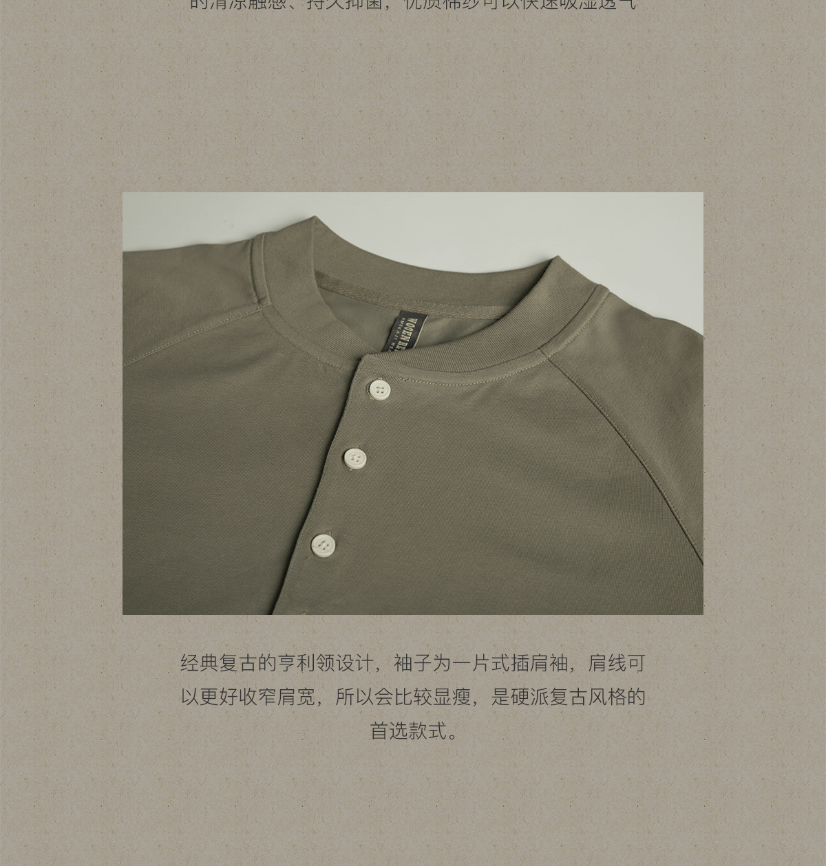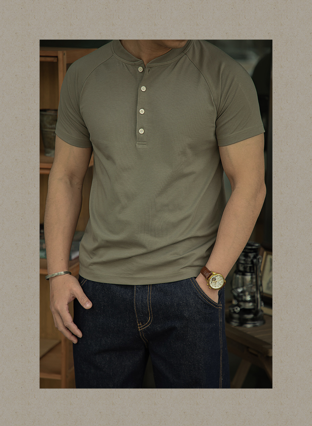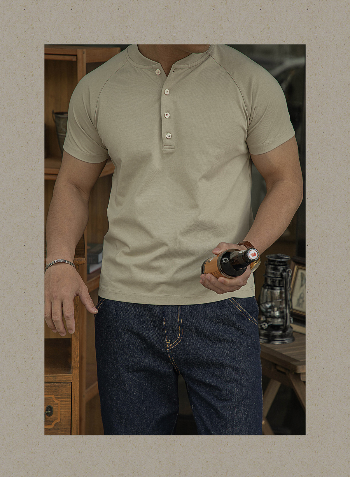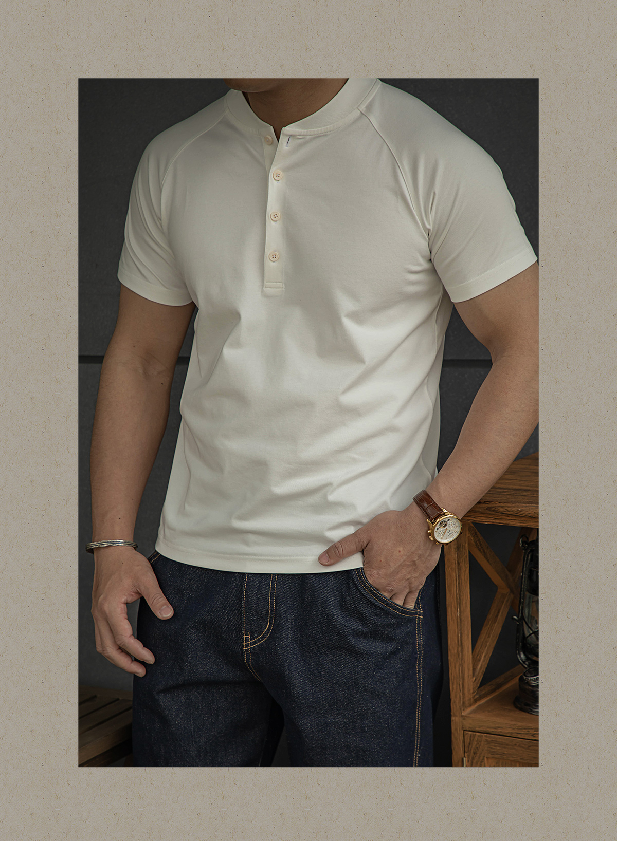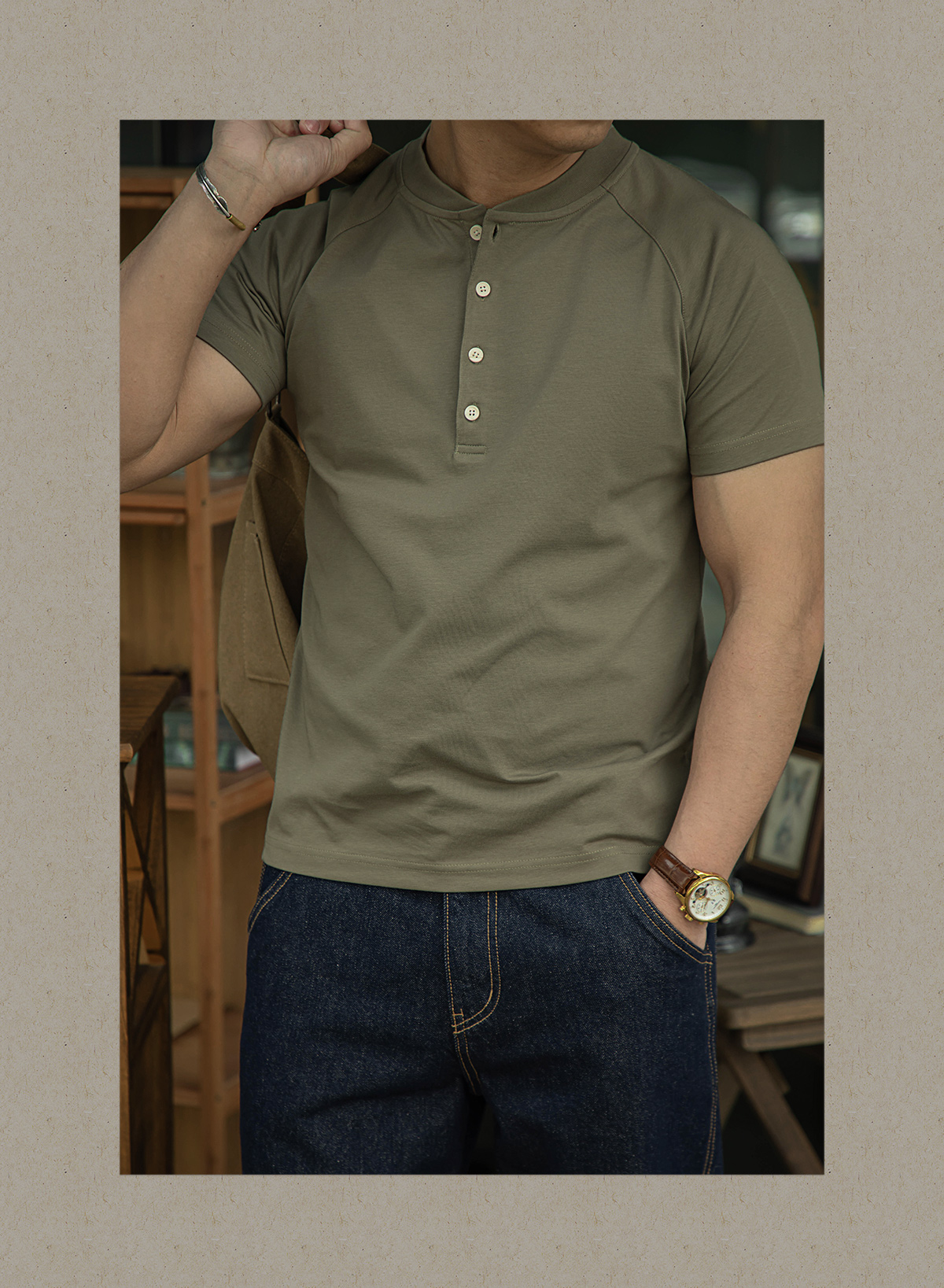 【硬派复古风 凉感索罗娜 高弹不束缚】唔刃美式亨利领插肩T恤(WR241TE1008)