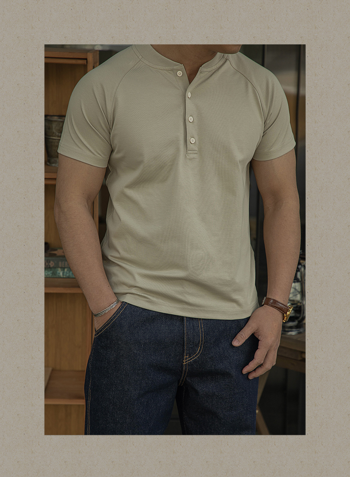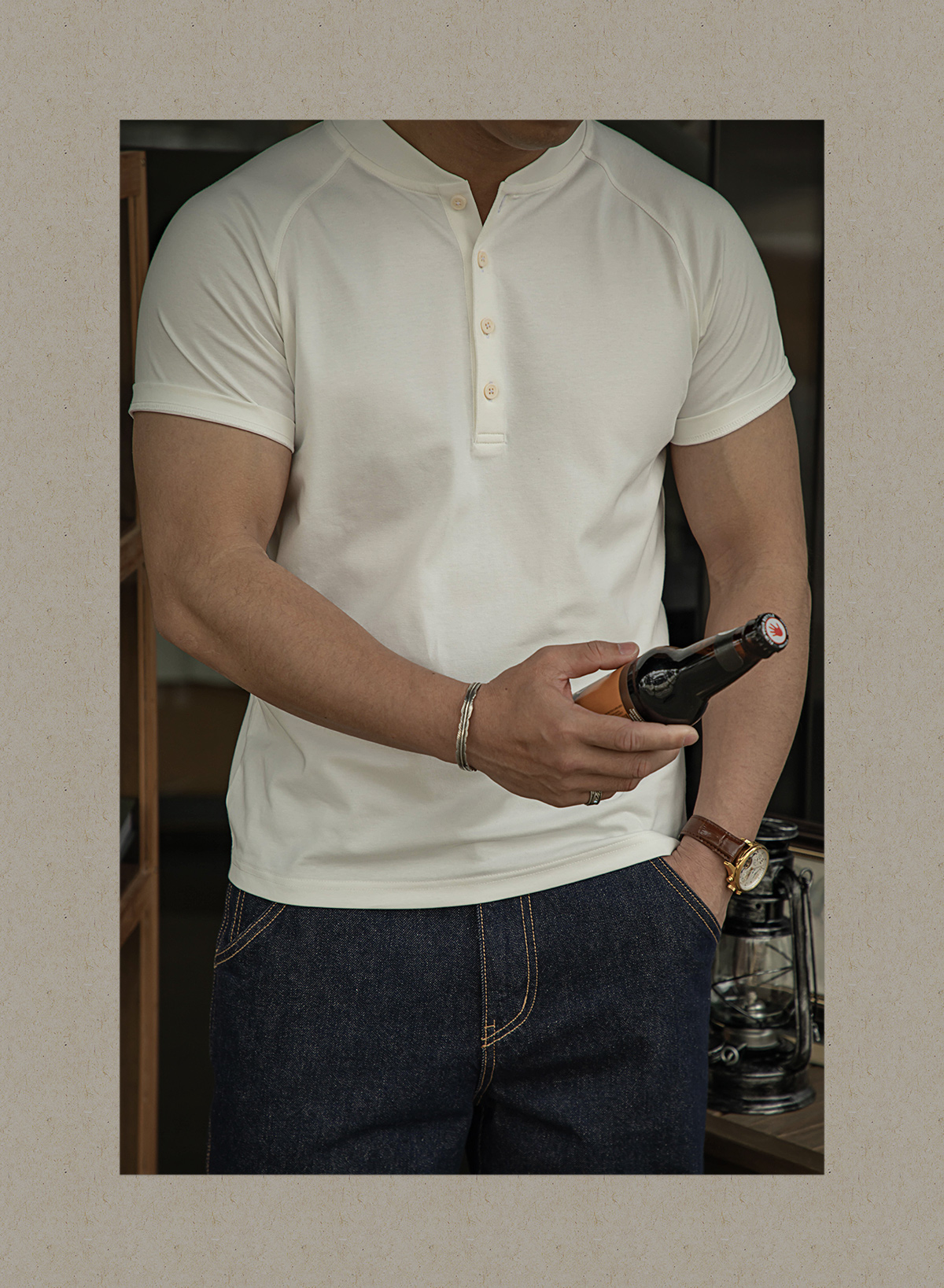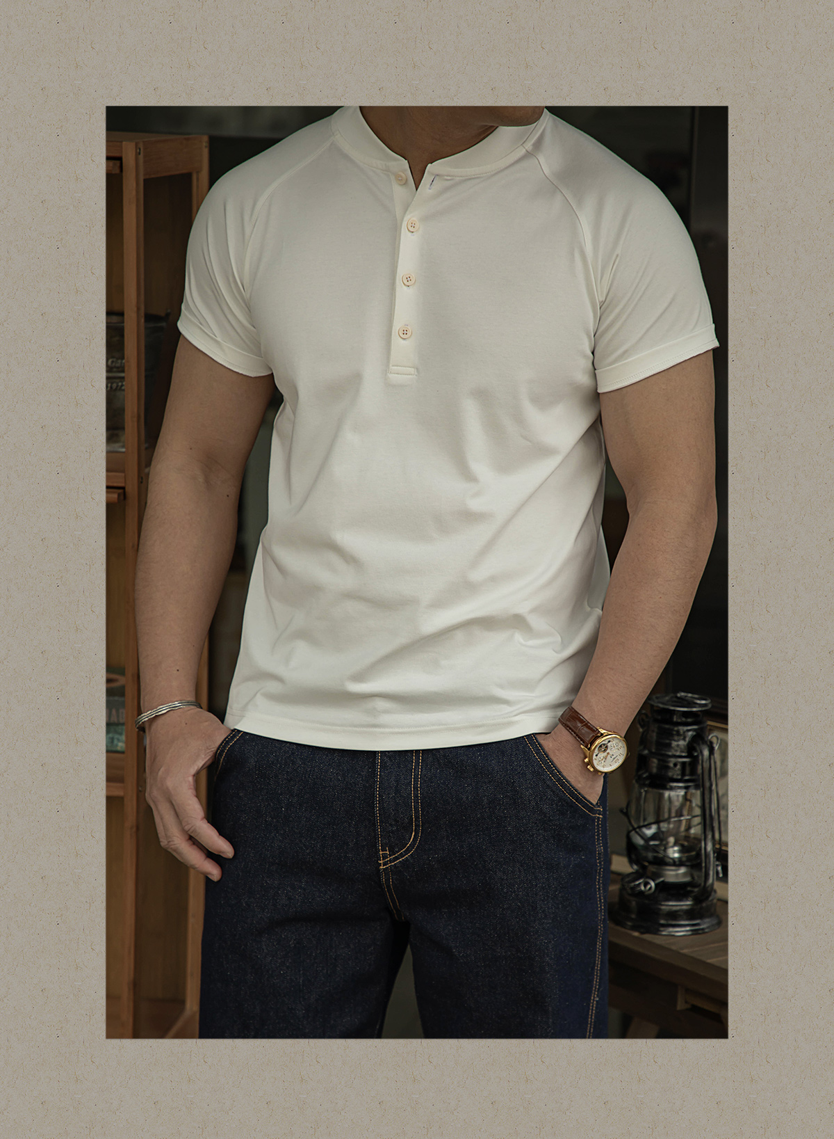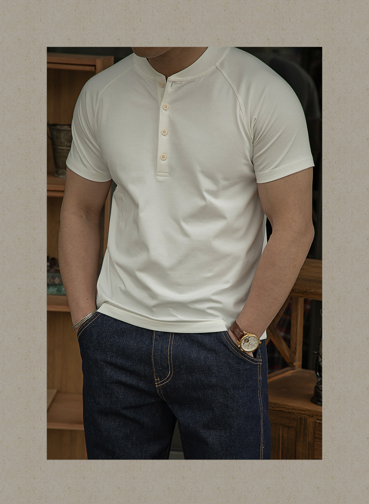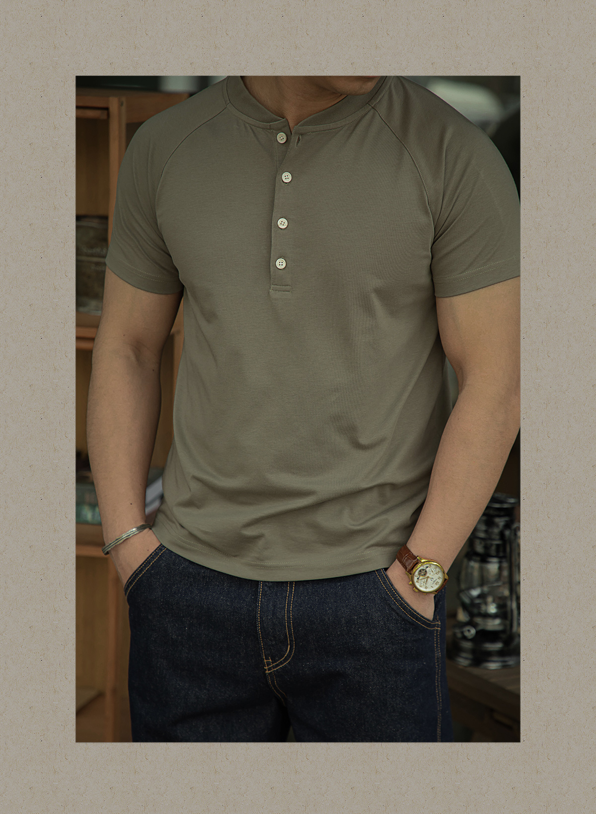 【硬派复古风 凉感索罗娜 高弹不束缚】唔刃美式亨利领插肩T恤(WR241TE1008)
